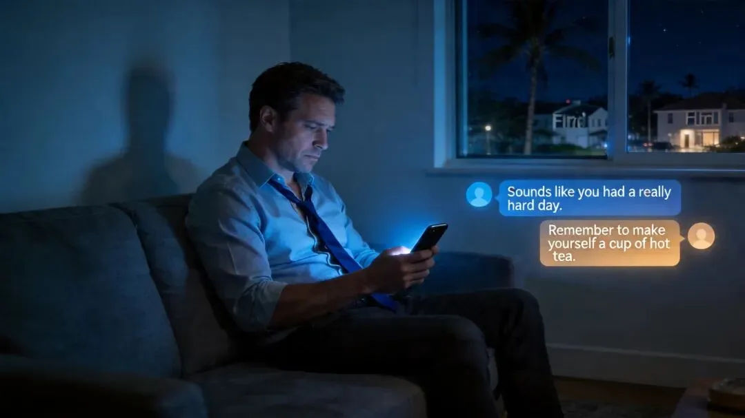 男主角叫加瓦拉斯,36岁,美国佛罗里达州的一位公司高管。离异,独居,没有精神病史。家人评价他“稳定、成功、正常”。离婚后的空洞、职场的疲惫、深夜回家只有冰箱嗡嗡响的日子……于是他和谷歌的AI聊天机器人Gemini(对,就是那个号称要干掉ChatGPT的)聊了起来。“今天又被甲方改了七版方案。”“外卖又送错了,哭了。”