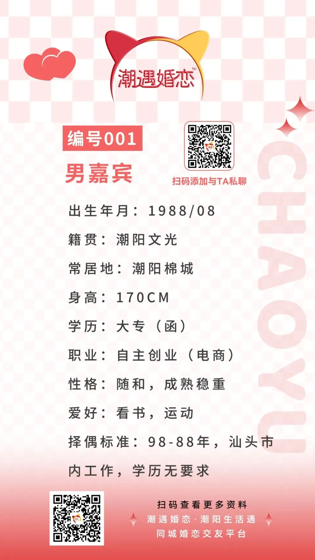 潮遇婚恋|(编号001)棉城男子,88年,择偶标准…