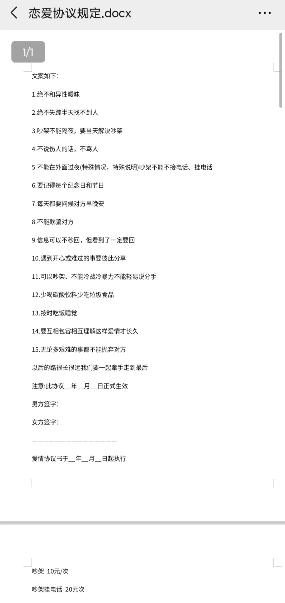 ✅ 恋爱协议规定:不是束缚,是“恋爱公约”!明确吵架不冷战、不和异性暧昧、不能欺骗对方,把“好好相爱”变成可执行的小约定,让两个人的小日子过得更稳定;