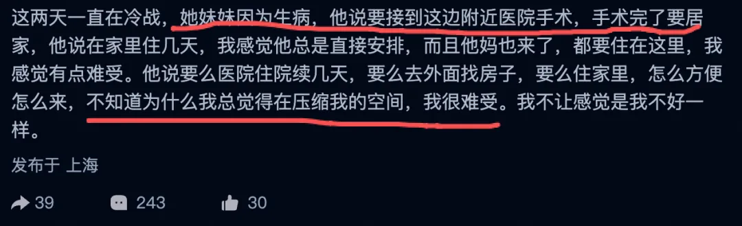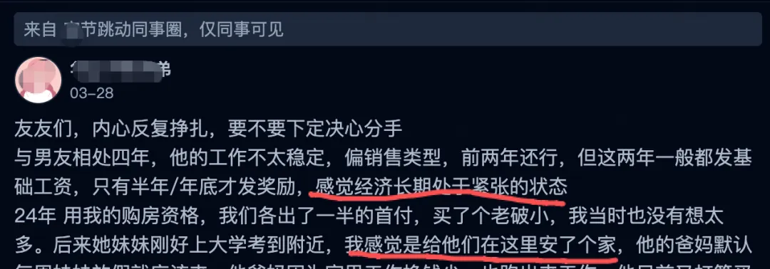 姑娘不是不讲道理的人,她理解男朋友孝顺父母、心疼妹妹。但她心里也委屈啊——这套房子她也有份,凭什么住进来的人越来越多,她的边界却越来越模糊?