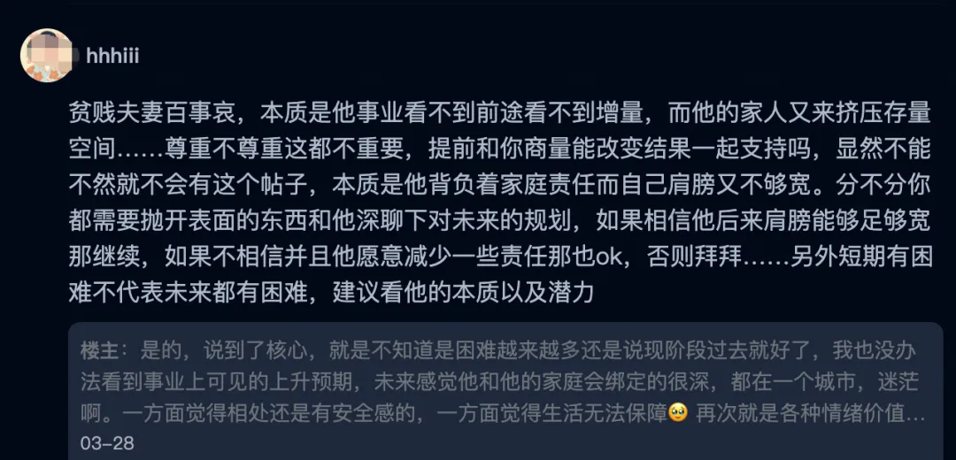有人在物质匮乏时选择坚守爱情,有人在感情淡漠时选择及时止损。无论哪种选择,只要是自己想清楚的,就值得被尊重。