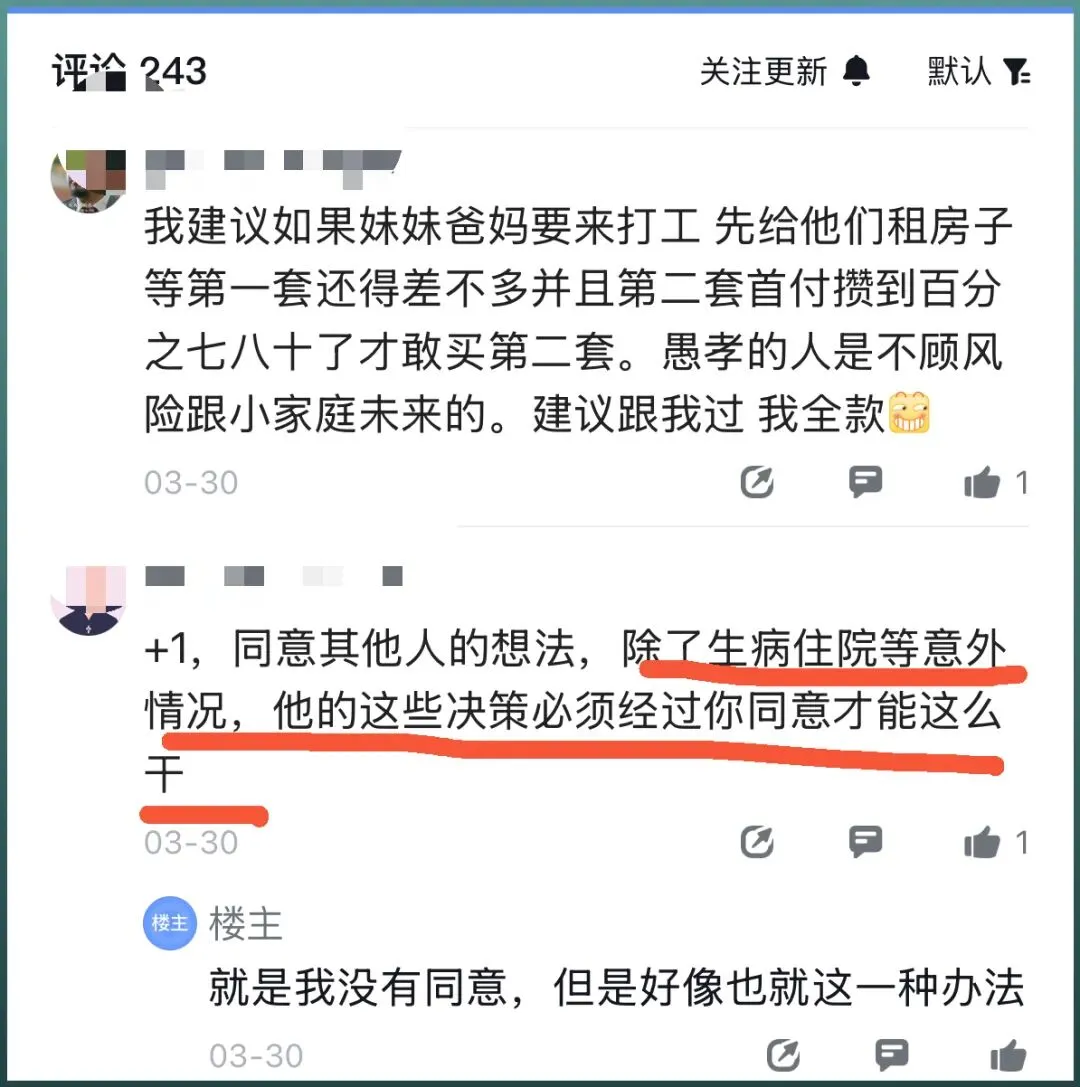 但最近,男朋友又提出要再买一套外环的房子。他的想法是:以后爸妈养老要花钱,不如趁现在把房子解决了,以后还能帮忙带孩子。他的理由听起来很充分——用爸妈的钱,把老家的房子卖了,不用他自己额外掏钱。