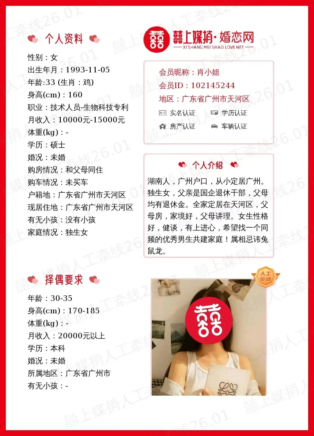 这位广州天河区的生物科技专利师(33岁/硕士/月入1.5W+)的择偶标准,展现了高知女性理性与感性的完美平衡: