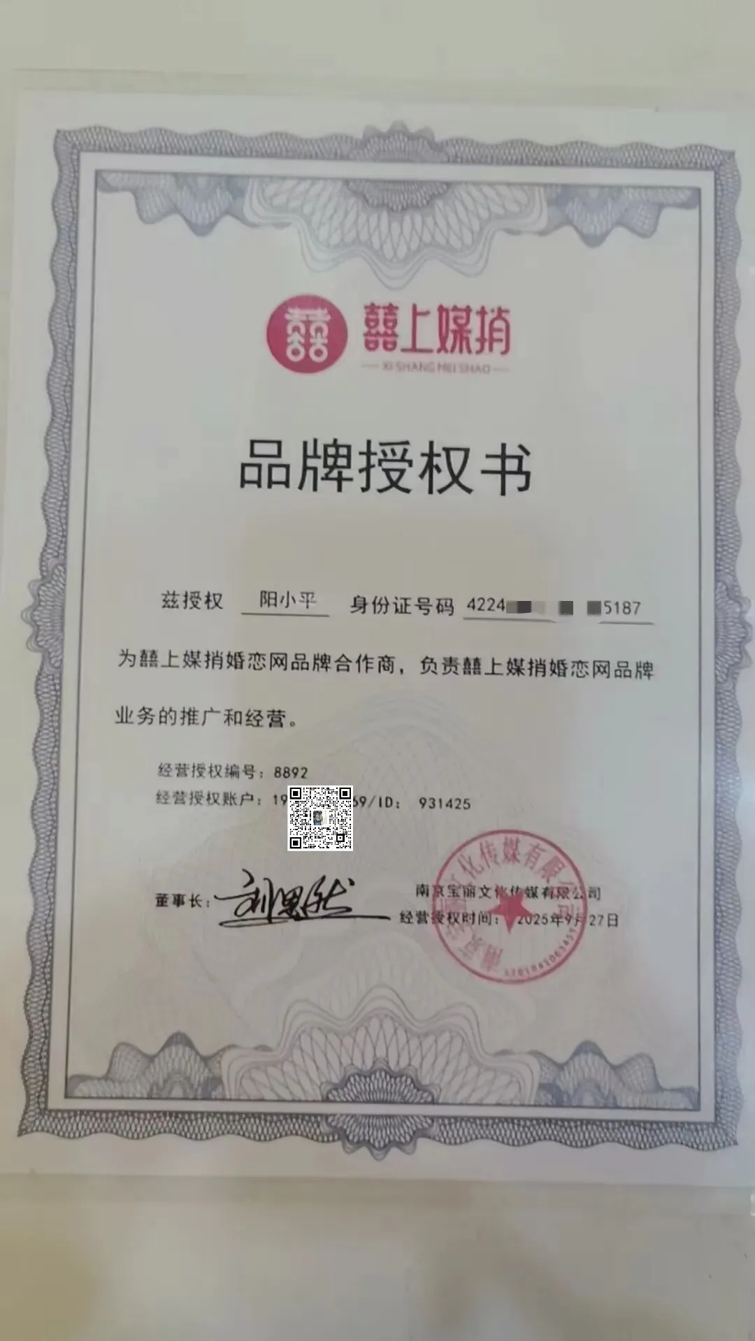 囍上媒捎授权店核验(经营授权编号8892),资料三重认证