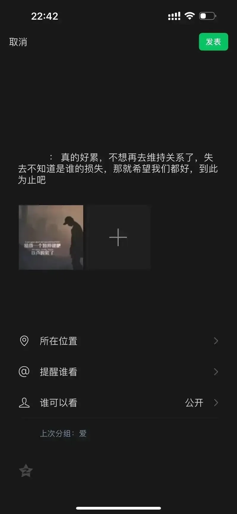 截图里,是一个博主没写完的推文。他本来想勾选“单身”状态,却在第三行写下了一段话: