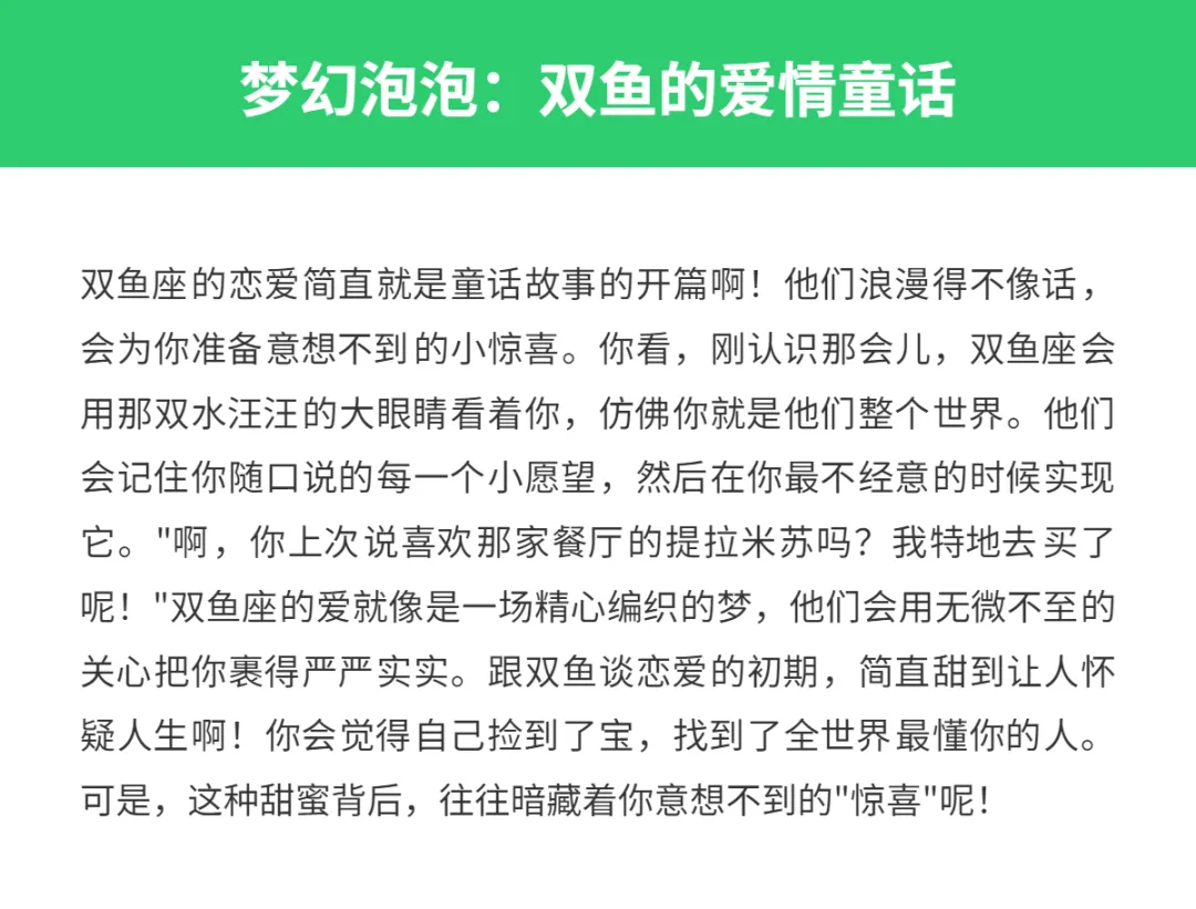 双鱼座的爱情就像是一杯加了过量糖的咖啡,开始时甜到心坎里,喝多了却让人心慌意乱。