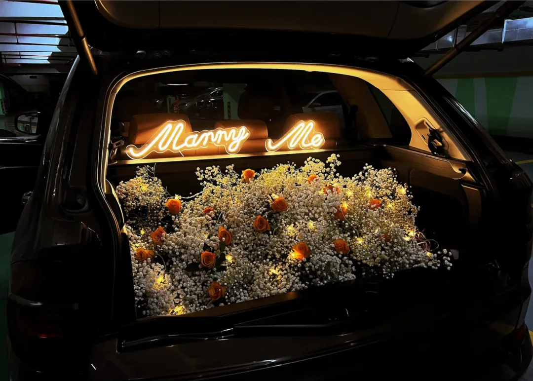 看短视频学来的劣质套路,花好几百块买一堆廉价气球和地摊彩灯,在人来人往的地下车库里强行逼着伴侣捂嘴表演感动,搭进去大半天的布置时间和极其尴尬的公开处刑。拍完照剩下的时间全在满头大汗的收拾这堆塞不进垃圾桶的工业废品。这哪里是制造浪漫,这分明是沦为了资本的提线木偶。
