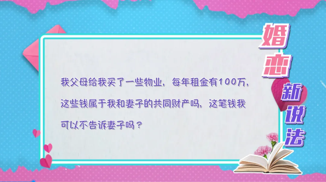 我父母给我买了一些物业,每年租金有100万,这些钱属于我和妻子的共同财产吗?这笔钱我可以不告诉妻子吗?