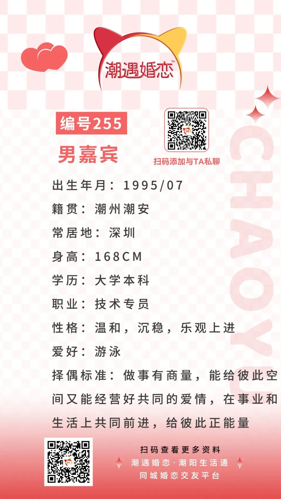 【潮遇婚恋】嘉宾:编号255号男嘉宾 · 常居深圳,年收入20w~