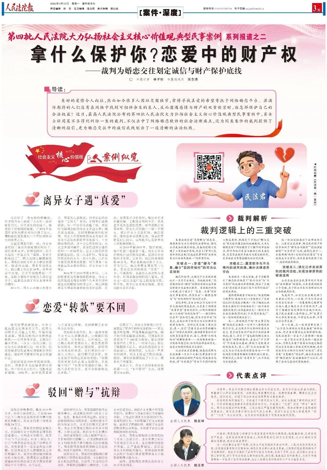 本案通过穿透“恋爱赠与”的表象、厘清欺诈与不当得利的法律衔接、强化公序良俗的裁判功能,在裁判逻辑上实现了三重突破性建构,彰显了《中华人民共和国民法典》实施后民事审判“法律效果与社会效果相统一”的鲜明导向。