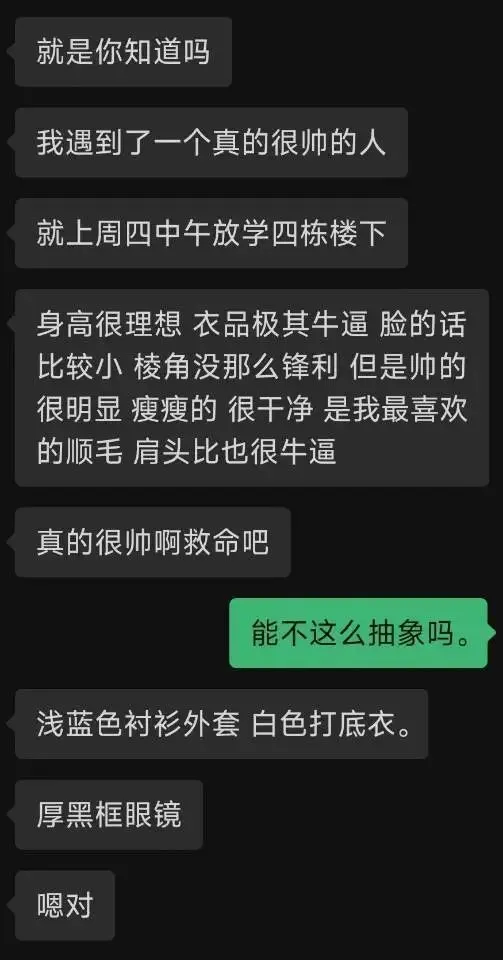 ❗️今天(4月17日)东门,中午12.40下去领车发现车座被划破❗️后视镜根本掰不回来❗️昨晚停车我确定车的位置没有问题,且无损坏。请这位刮到我车的同学联系我Amzl--2684,实在不行我不介意查监控处理!!!! 注:同学已经看见你样子和车了你好👋可以帮我问问,学校里有没有玩 cos 的同学可以和小女子扩列的呀[委屈]平时可以约着一起去拍照✧٩(ˊωˋ*)و✧或者漫展#cosplay学校有妆娘吗 轻泰妆 烟熏状之类 换头那种 一般般那种不要🙅想找个在北门大力健身的搭子~比较喜欢重量训练,一周大概三练或者四练想问问我们学校的拉子都是怎么谈上恋爱的 主播自己在热拉上翻烂了都找不到女朋友 不然就是刚开始很热情后面就直接不理人的😭有没有学校的拉子可以认识了解交友一下的 主播想谈恋爱啊啊啊啊问一下有没有喜欢玩鹅鸭杀的朋友,平时有时间大家一块玩的开心的不恶意互相压力的,有意可以私我建个小群平时大家一块玩[嘿嘿][嘿嘿][嘿嘿]捞一下这几个宿舍的人商量一下宿舍调动的事情,因为学院要给我调宿舍,可能会调到以下三人寝中捞一下报名40周年马拉松的友友,五一回来一起训练(限女生)[拥抱[拥抱][拥抱]])有没有人真心谈恋爱的,本人男07年的,170,想试试谈恋爱的感觉同学们好呀~本人女,住朝晖,舍友都睡的比较迟一般两点到三点之间,我想早些睡觉彼此之间有点相互影响,所以想看看有没有也想晚睡但是舍友睡的早的友友可以和我互调哦! 本人性格安静、好沟通、作息规律,爱干净,无不良习惯。 如果有同学愿意和我互换宿舍,或有空床位可接收,麻烦私聊我,非常感谢!本人男生,想交几个喜欢唱歌的朋友,平时有空可以去北门ktv唱歌替友问。顺便叠甲,她眼花没那么帅当她没说。而且他当时像是在等人有女朋友就算了捞一下今天17.50后在三栋教学楼楼梯上的女生 穿的是浅粉色上衣 深蓝色裤子 没有背包有没有喜欢打羽毛球的 会打就行 人多的话可以拉个群有空的一起找几个乒乓球🏓或者羽毛球🏸搭子,本人是新手,新手和老手都可以一起打,有一起的吗?问一下,如果打算4月底左右,在学校办cos主题活动,有人愿意出cos吗,只是询问一下大家意见捞捞中午放学从厚德楼A到北门路上遇到的黑白裤子男生 真的很帅[扭捏][扭捏]想问问我们学校有没有羽毛球社团?或者有没有新手宝子可以一起打的☺️朝晖,打球不小心把这辆车的后视镜打碎了,抱歉,车主麻烦加微信我赔偿给你,抱歉抱歉[合十][合十]想找一个对象,本人大四女,要求180以上,能留在本地工作的或者目前还在上学怎么谈恋爱啊?我不会谈,哪位好人教教我? 留下你的微信捞下今天篮球赛上午十一点多穿红色球衣的六号 好像姓蓝 本来想上去要微信但是一直没等到解散捞一下今天下午七点左右在香晖c靠里面那侧扶我的姐妹 今天下楼拿东西在电梯突然低血糖了,手上拿的可乐也撒了,特别感谢她一直扶着我直到我缓过来还让我先回宿舍她来处理。当时太难受没来得及看清你的样子,真的超级感激!如果本人看到的话,麻烦联系我一下,想请你喝杯奶茶[流泪][爱心]想问问有没有5.10去看颜人中深圳演唱会的!可以一起拍照想问问咱学校有没有少女乐队同好,孤独摇滚,邦多利,gbc,轻音,想交友聊天,目前在学电吉他,可以交流交友有偿一杯奶茶捞管理学院男排球队一号队员,还在打比赛不方便过去,如果有npy就算啦1、投稿者所拍的照片【不得损坏被拍者的形象】,否则不给予发布;