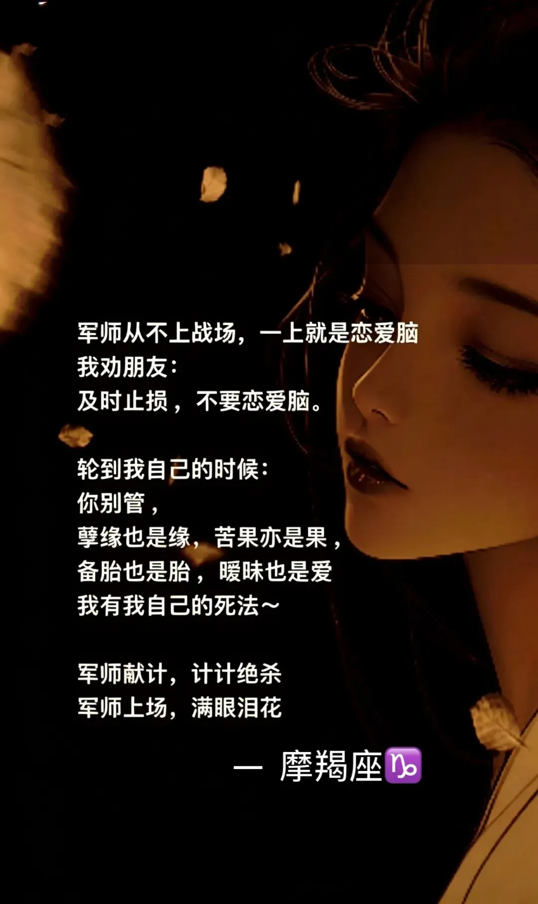 轮到自己深陷感情时,摩羯瞬间卸下所有防备,成了不折不扣的恋爱脑。