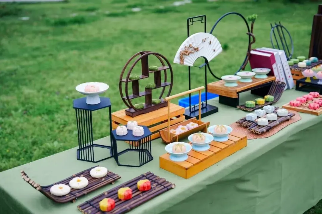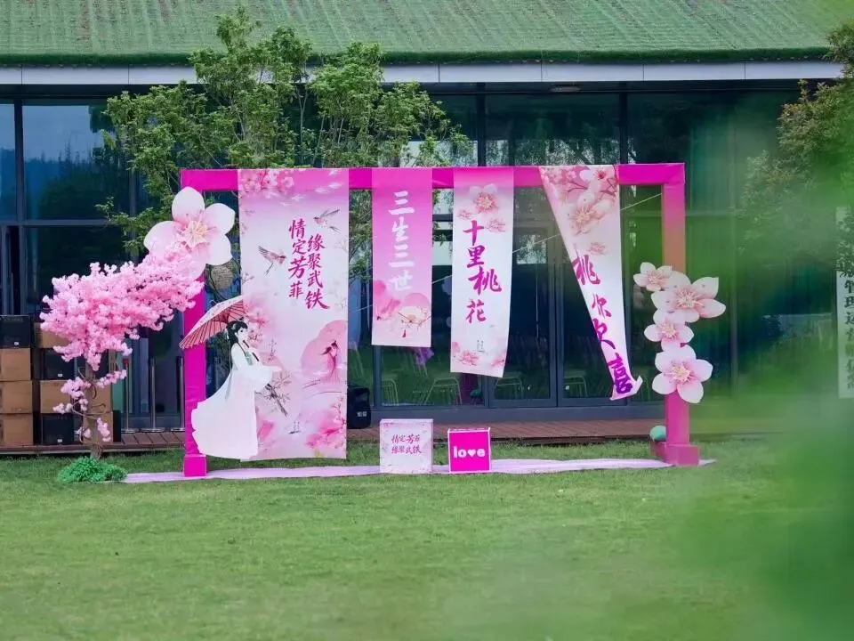桃花签到区、中式茶点铺