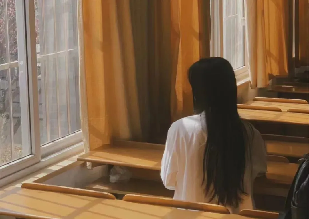 他偷偷转头看她,女孩柔和的侧脸上有一层薄薄的绒毛,眼睫毛眨呀眨,鬓边的蝴蝶发卡闪着银光。窗外是夏日傍晚的夕阳,窗户的玻璃上倒映着这个可爱女孩的影子。