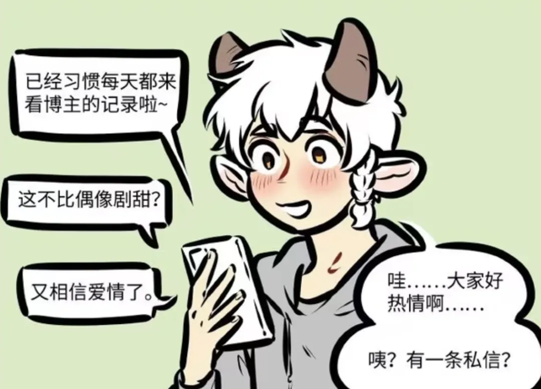 虽然震惊,但是泥泥还是很开心的。因为现在每天除了记录日常,泥泥还有了新的任务。那就是每天回复粉丝给自己的留言,因为自己的日常,泥泥收获了一众粉丝对自己爱情的见证和祝福,让泥泥又是惊讶又是激动。正当泥泥浏览粉丝留言时,突然发现有条私信进来了。