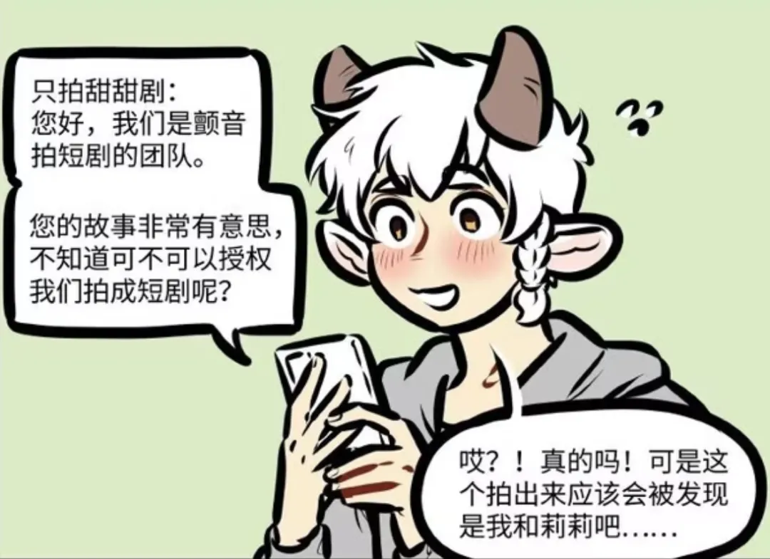 以为是粉丝的泥泥点开私信,发现是是颤音拍短剧的团队“只拍甜甜剧”。因为觉得泥泥的故事非常有意思,询问泥泥是不是可以授权给他们拍成短剧?!泥泥激动的同时也有些担忧,害怕被拍成短剧的话,万一被发现主人公是自己和莉莉就不好了......