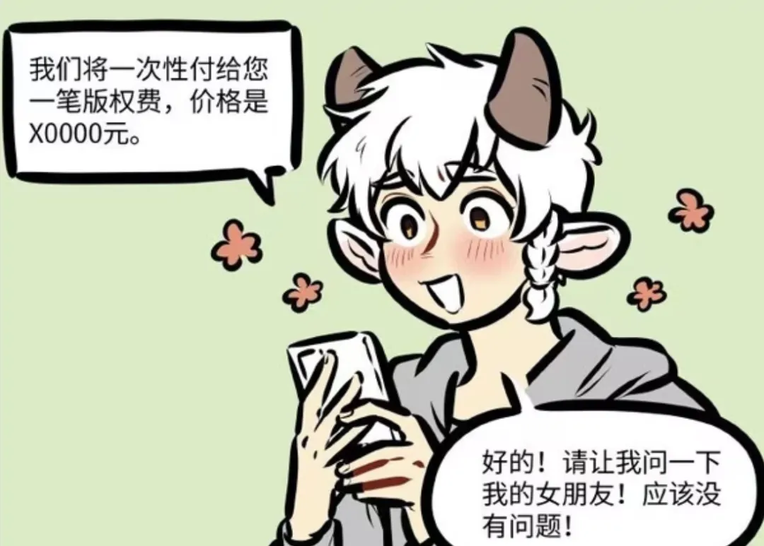 正当泥泥犹豫时,短剧团队又发来私信告知将一次性付一笔版权费用,价格是X0000元。这笔可观的版权费,瞬间打消了泥泥原有的一点点顾虑,马上就同意,并让对方稍等,自己要和女朋友商量一下!并表示应该是没有问题的!