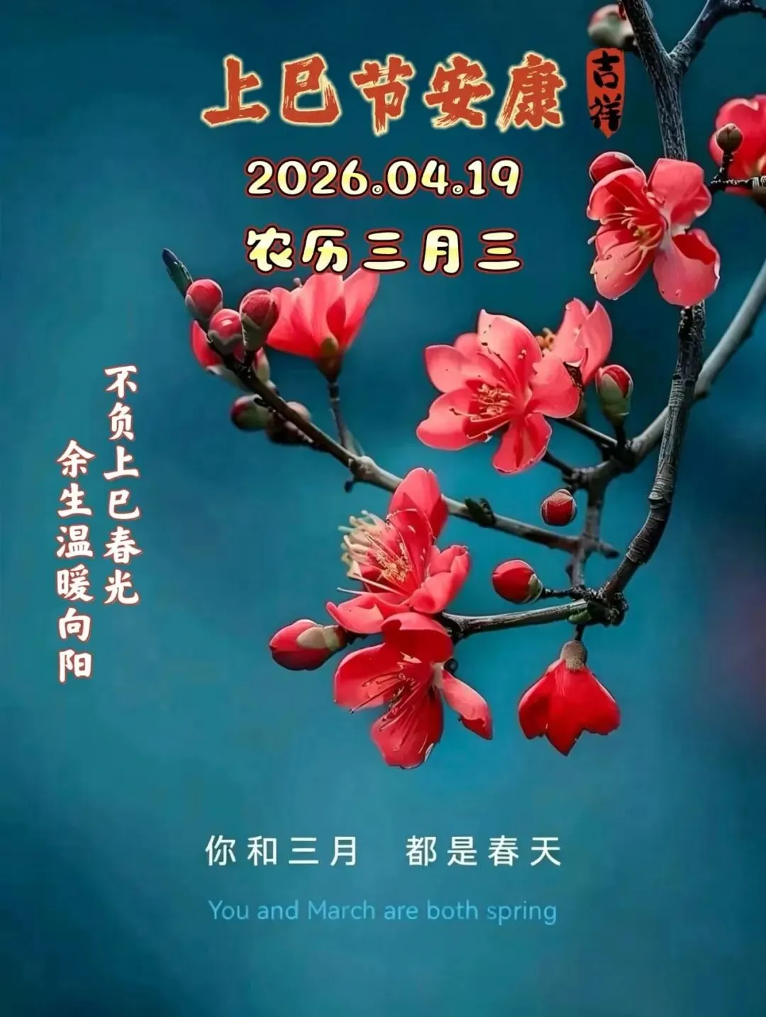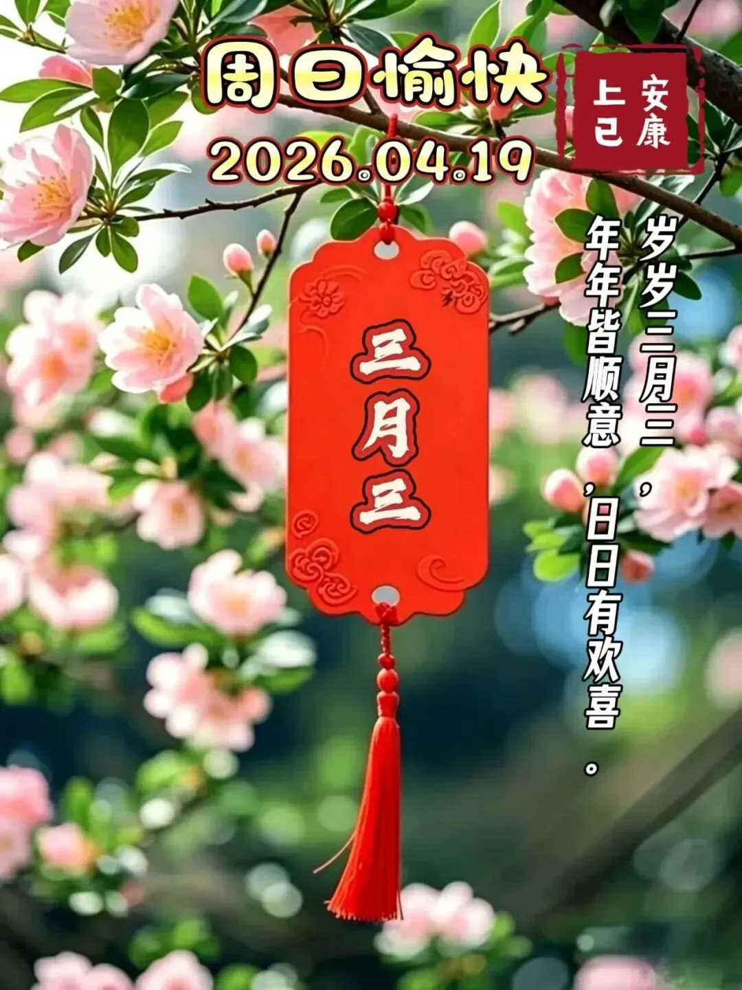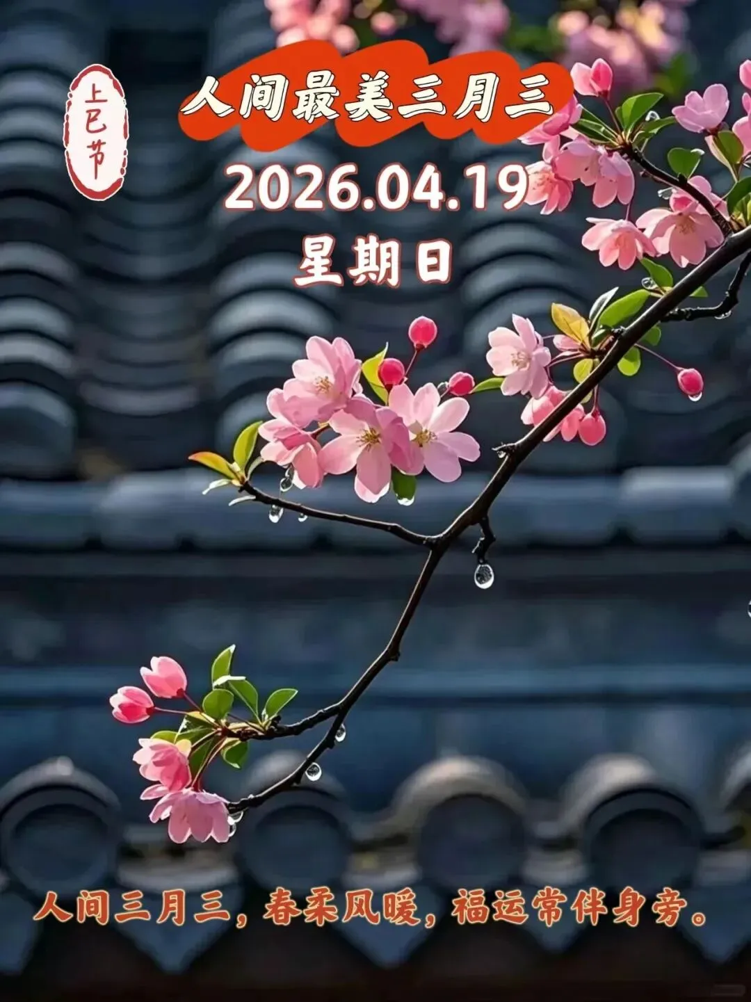 今天农历三月初三,上巳节到了,风顺气暖,福气到家,心里是不是就想出门转一转,沾点喜气?愿你从此刻起,事顺人顺,身安体健,朋友更亲,财运更旺,平安常在,心情一直亮堂起来,好日子一天天红火下去