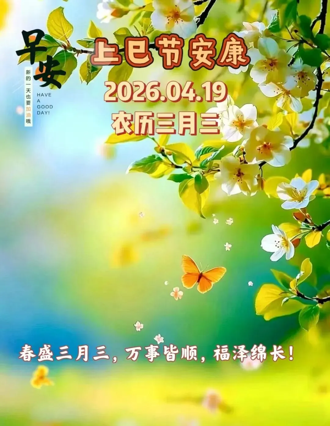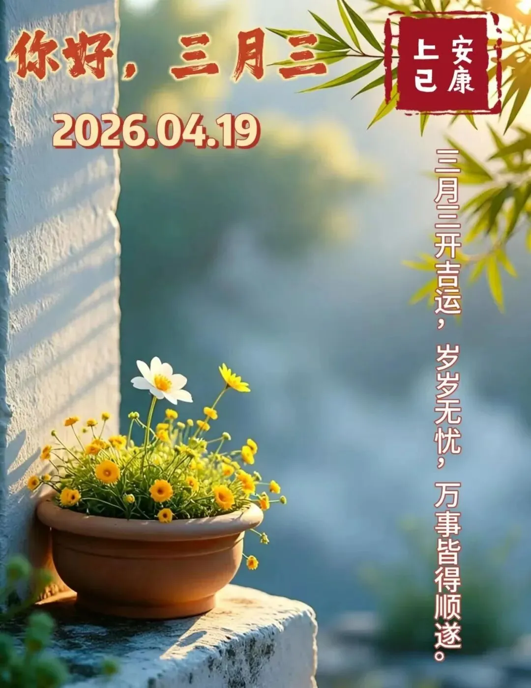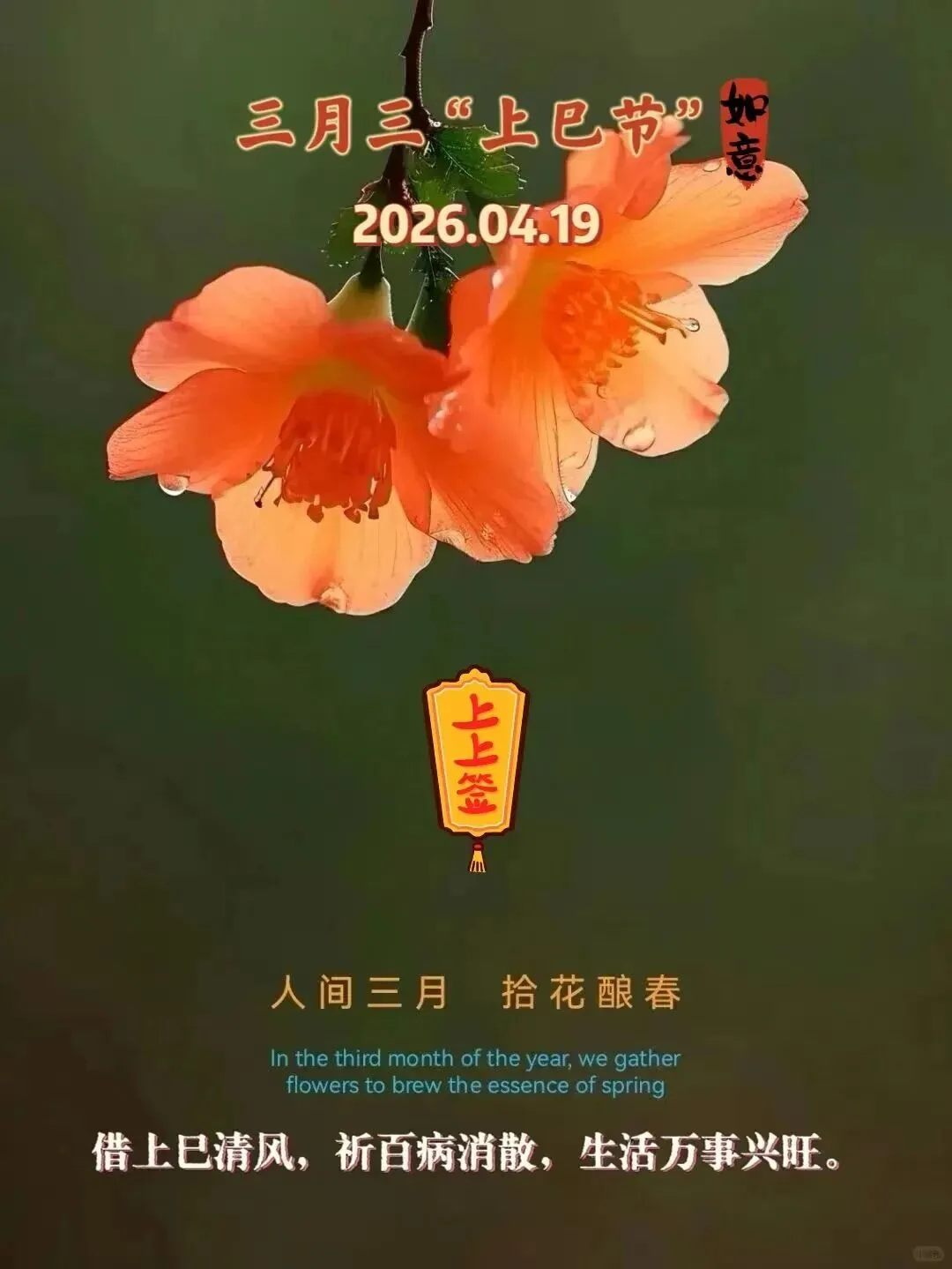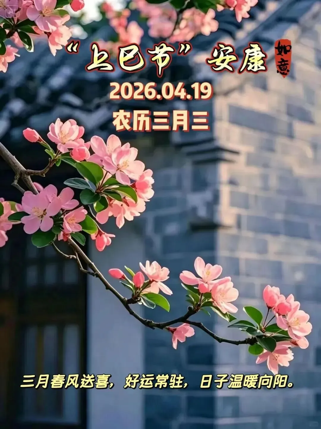 今天农历三月初三,上巳节到了,风顺气暖,福气到家,心里是不是就想出门转一转,沾点喜气?愿你从此刻起,事顺人顺,身安体健,朋友更亲,财运更旺,平安常在,心情一直亮堂起来,好日子一天天红火下去