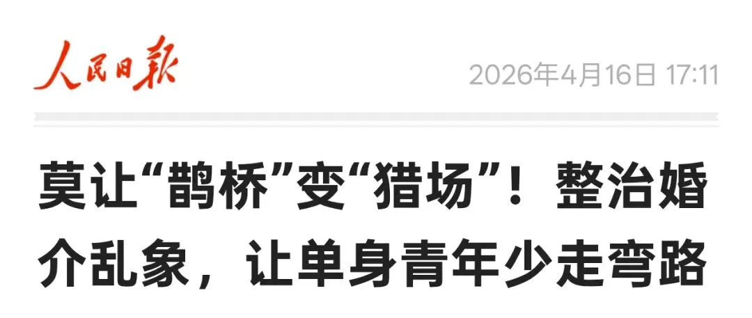 婚恋服务事关民生幸福,规范婚介市场是民心所向、治理所需。唯有以严监管破除行业顽疾,以善治守护市场秩序,以诚信厚植行业根基,才能让婚介服务回归初心,让“鹊桥”真正承载美好姻缘,为群众幸福生活保驾护航,助力构建和谐稳定的社会环境。