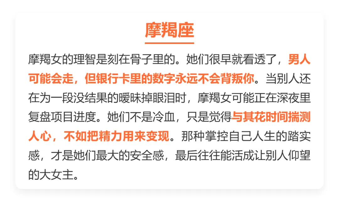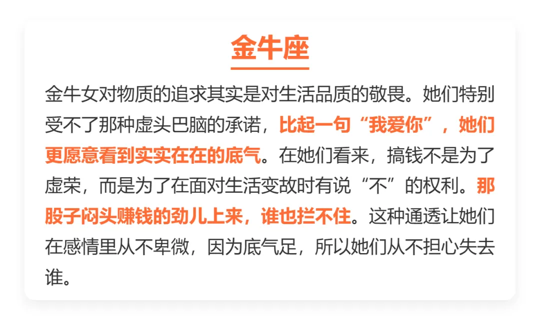 很多.人觉得.女孩子太.现实不好,其实说白.了,在这.个凡.事都.要成本.的时代,清醒一.点反.而是种.高级的.自律。与其在.一段烂.感情.里内.耗,不如把.心思花在.银行.卡余额.上,这不是.拜金,而是对.自己负.责。今天咱们.就聊聊,那几个.把搞钱.看得比.恋爱重,活得.特别通透.的星.座女。
