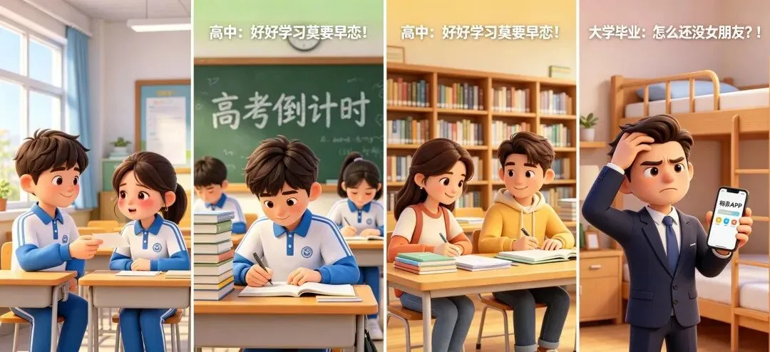 初中、高中、大学,似乎谈恋爱都会被打上影响学习的原罪标签,初中怕影响中考,高中怕影响中考,大学怕影响考研考博,但到了大学毕业那天,家中长辈才恍然开始关心:怎么还没有女/男朋友?!画风转变之快,让人措不及防!