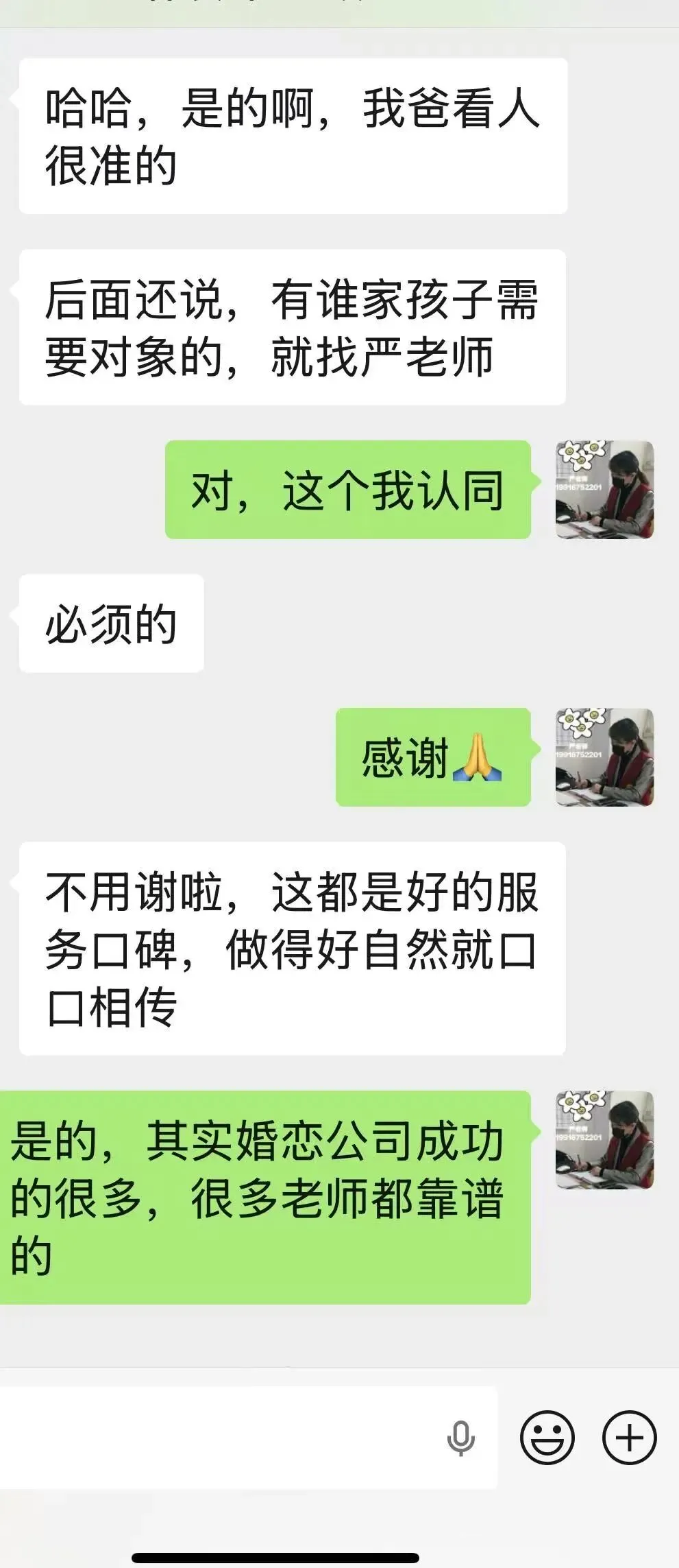 严老师秉持 “用心沟通,用爱服务” 的理念,服务中注重情感交流,给予贴心关怀,提供切实可行的方法。她将细节放在首位,全面考量家长与孩子的想法,深知婚姻对家庭的重要性,以高度的责任感和专业态度,为每一位客户的幸福全力以赴。