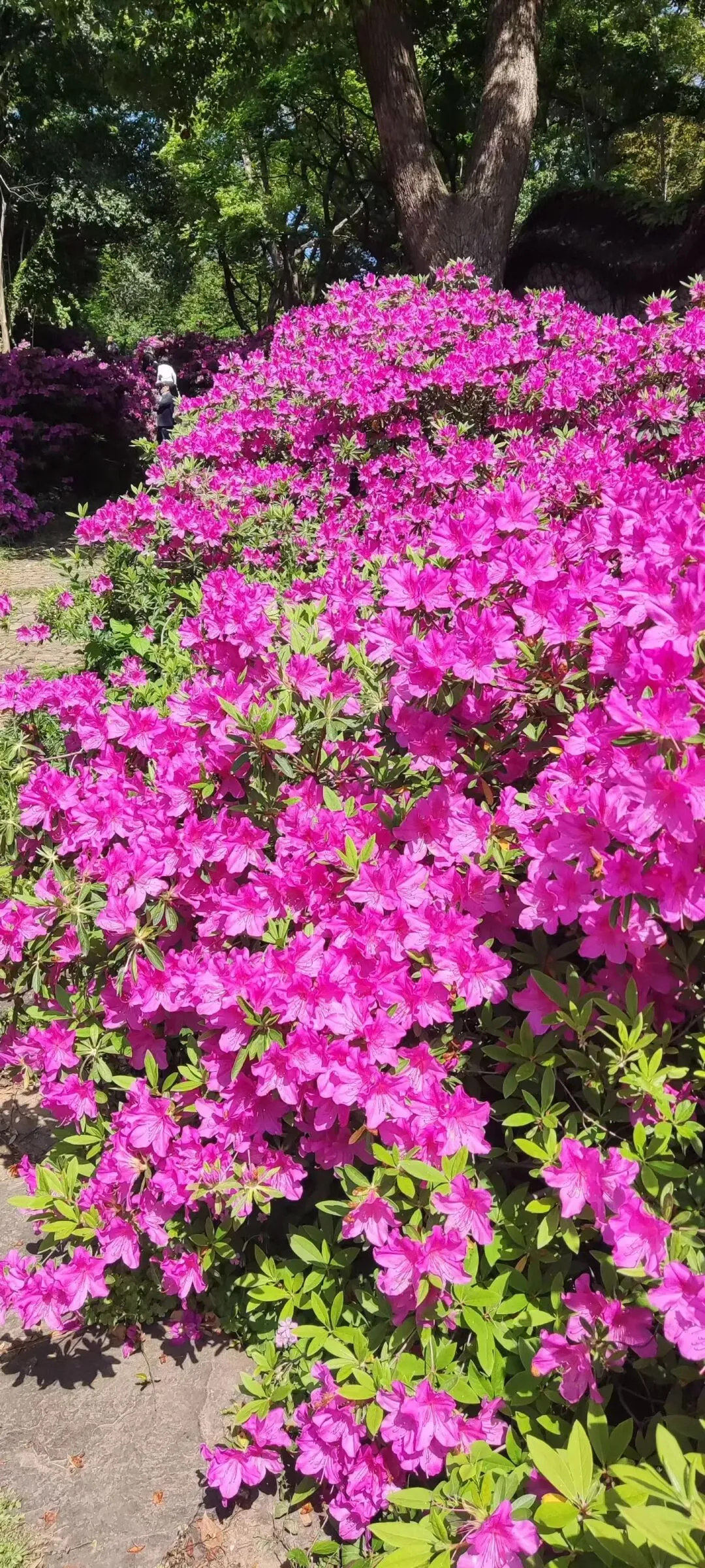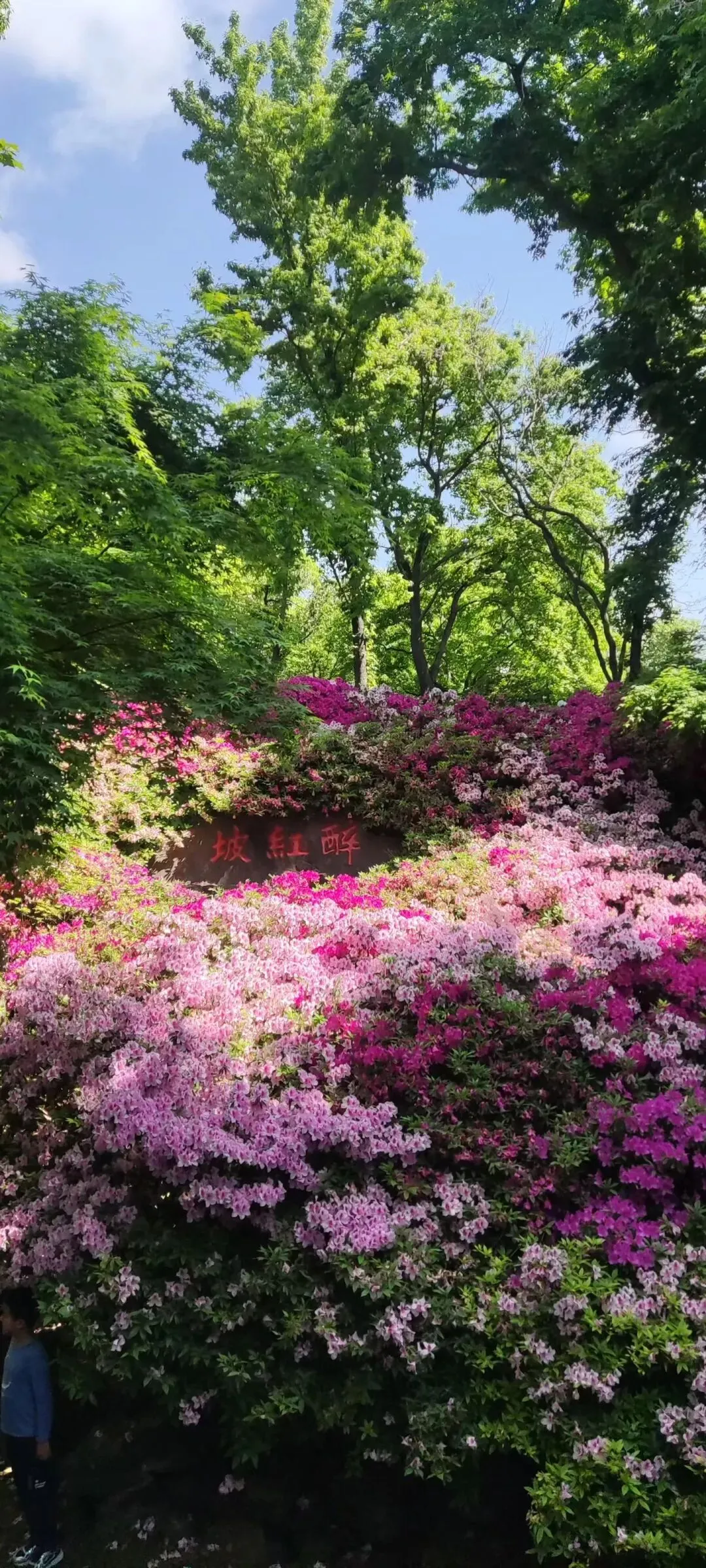 岁岁春归,漫坡杜鹃便如约盛放。浅粉似仙裙轻垂,嫣红如情意炽热,深紫若相思沉敛,千花万朵铺展如云霞落人间。四周古木浓荫蔽日,蓝天澄澈如洗,风穿林叶、花影轻摇,便是仙女仍在裙摆翩跹,温柔凝望这人间。