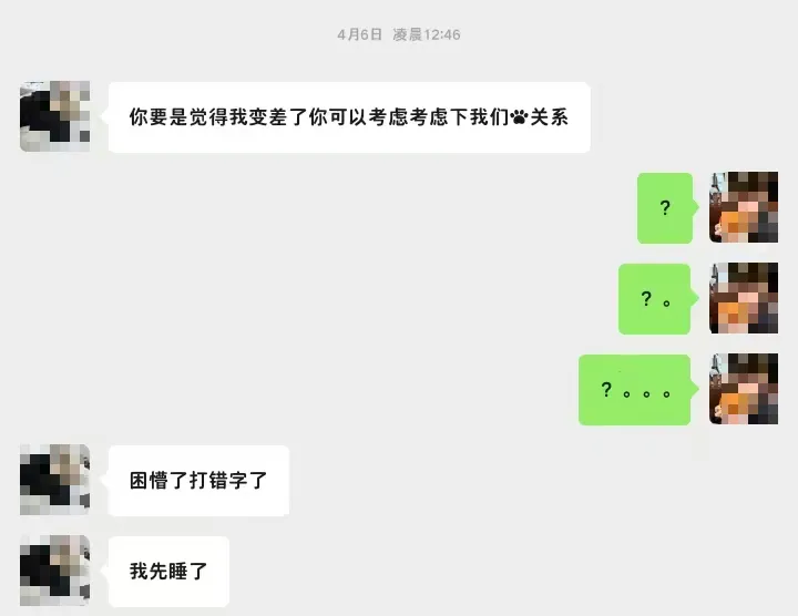 写到这里真的很心疼苦主真心换不来真心,心软反而成了被消耗的理由。一段好的感情,应该是双向奔赴、互相包容,而不是单方面的付出和委屈,更不是反复的消耗和冷漠。