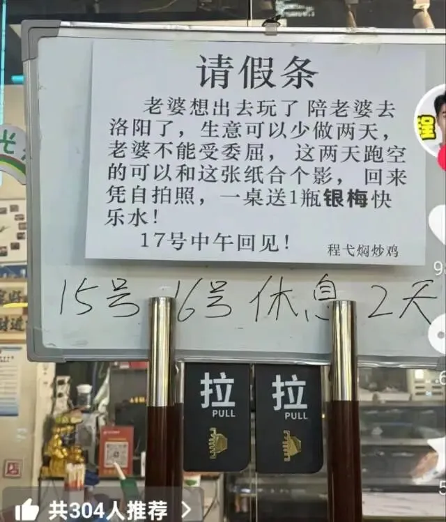 老公为了陪老婆去洛阳玩,直接关门歇业两天。生意可以少做,但老婆的委屈一天都不能受。