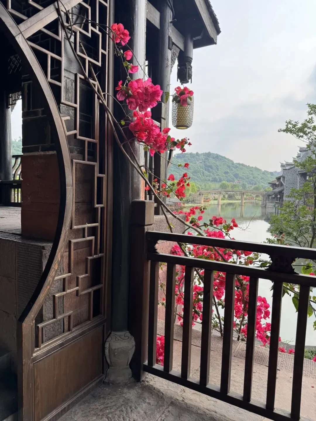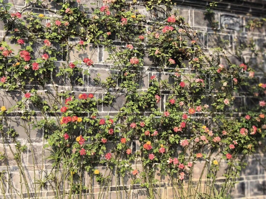 李庄古镇有很多花墙,阳光洒在墙面上鲜花上,很美,很适合拍照。