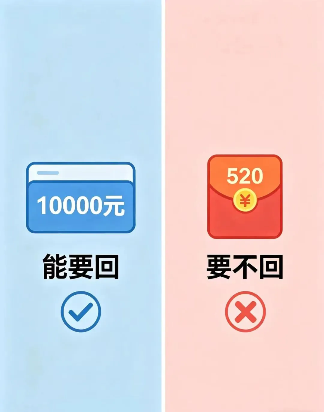 ★ 核心裁判总结:以结婚为目的的大额转账应当返还;特殊数字红包、小额日常花费不返还。