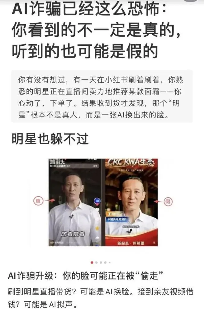 小红书上有人提醒大家AI诈骗越来越流行