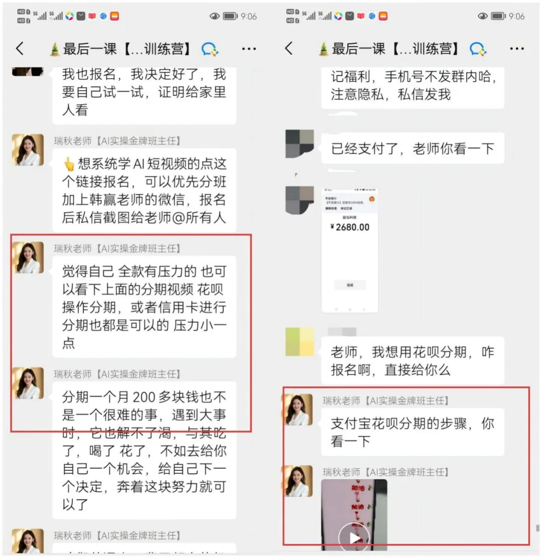 AI训练营班级群内,甚至有导师让中老年人分期贷款