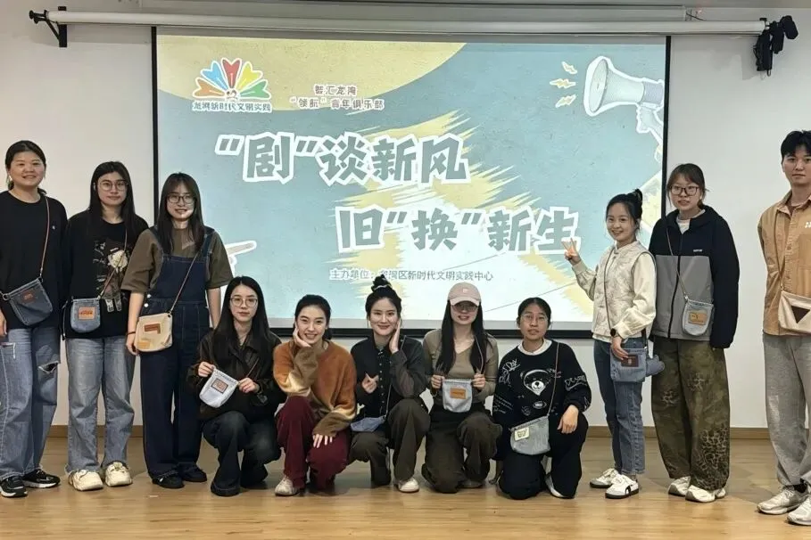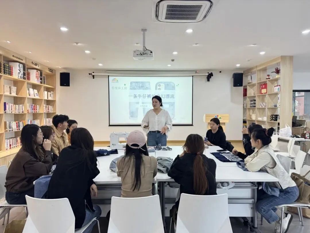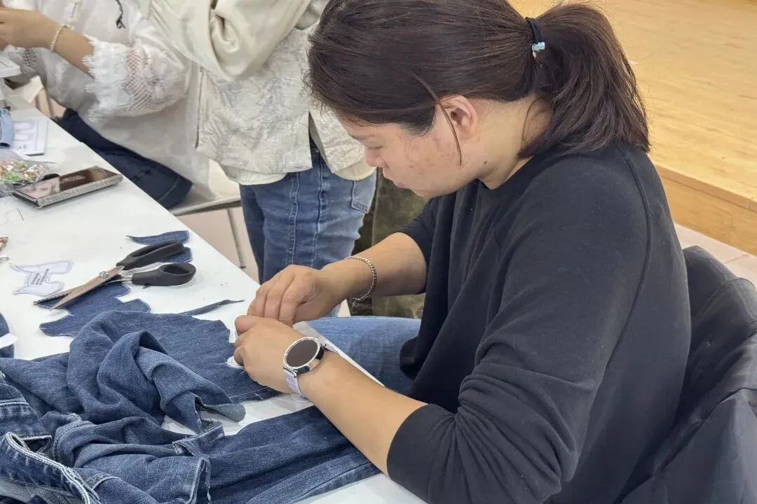 情景剧的余温未散,旧物改造手工坊随即登场。青年们带着提前准备的旧衣物齐聚一堂,在动手创作中,将闲置旧衣改造为精致实用的挎包,让原本尘封的旧物焕发全新生机,把节约环保的理念生活化。