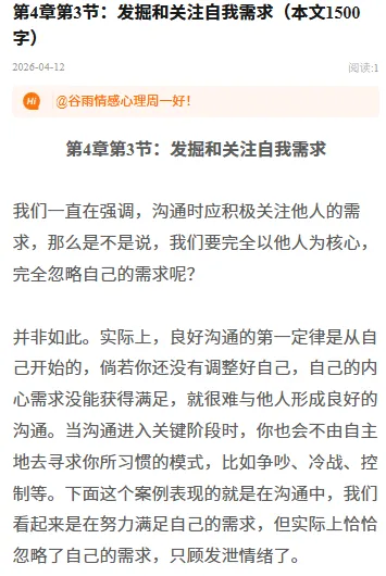 读完这篇文章,我深刻认识到在沟通中关注自我需求的重要性,这一点在现代恋爱婚姻关系里尤为关键。