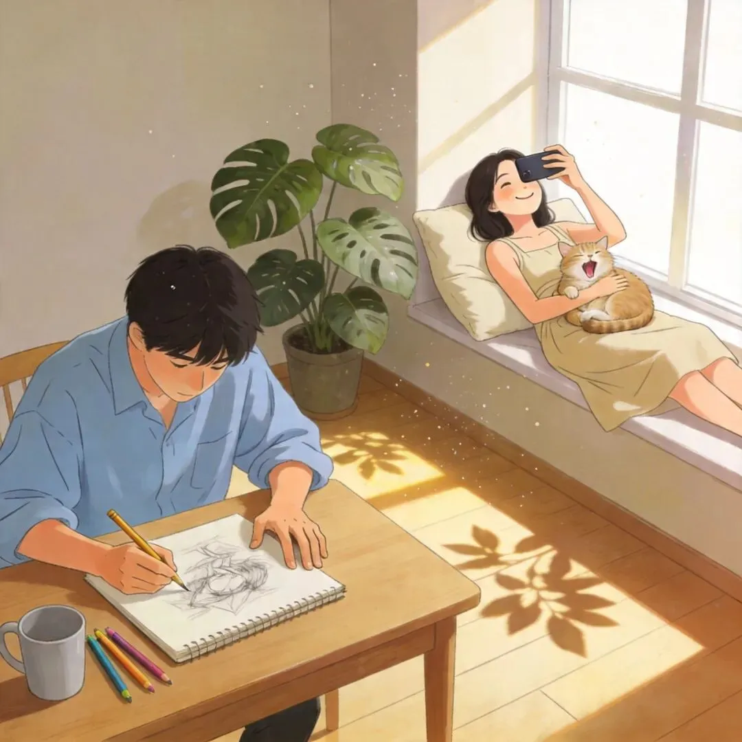 第三,允许彼此"有空间"他可以有自己的爱好,哪怕你完全不理解。你可以有自己的小世界,哪怕他从来不曾参与。健康的亲密关系,不是"我的一切都是你的",而是"我愿意分享我的世界,但我保留我的角落"。那个角落不需要很大,可能只是一张书桌、一个房间、或者半小时不被打扰的时间。但正是这些"留白",让关系有了呼吸的空间。