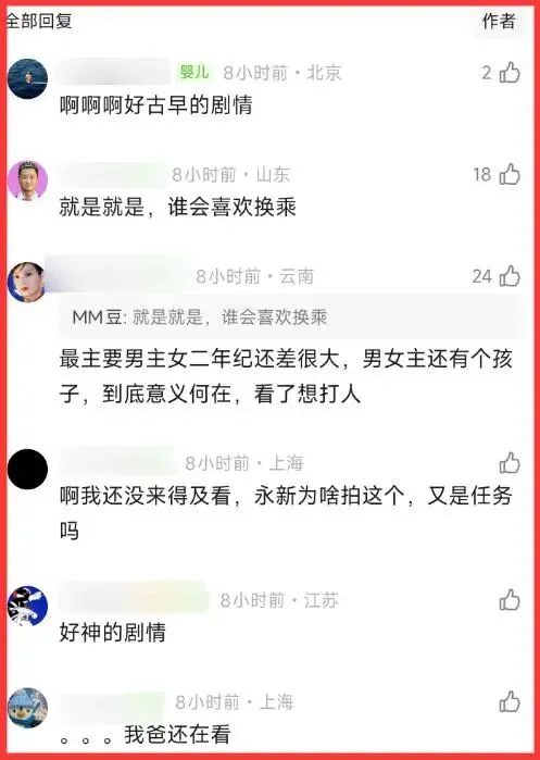 咱先说重点的,也是昨晚出现大批观众弃剧的主要原因——“换乘”顾名思义,就是几位主角在已经配对好的基础下,打乱重组,互换爱人。这种情节一般都是出现在比较狗血的言情剧中,用夸张、错位、甚至是超现实的设计,极大刺激观众的好奇心理。可我万万没想到,这竟然出现在了一部抗日剧中,甚至还是主线情节。张云魁(王阳饰)是国民党旅长,家境优越正直善良,一心只想为国为民。结果,在一次交战中,由于上层的错误指挥,导致张云魁所在的一个旅全军覆没,而上层为了逃避责任,竟然将黑锅扔给了张云魁,称其临阵脱逃,背负骂名。张云魁一生刚正不阿,为了六千名兄弟的名声,踏上了平反之路。另一个男主孟万福(黄澄澄饰)是一名普通厨师,在大婚前日,被国民党抓夫当兵。胆小惜命的孟万福几次逃跑,给张云魁留下了深刻印象,后来战争打响,孟万福体会到了战争的残酷。而在全旅被打没之前,他领下最后一个任务,带着张云魁的遗书跑到南京与家人报信。两位男主分别是背负六千人冤屈的落魄将军,和被迫推进历史舞台的小人物厨师。而两位女主,分别是张云魁的妻子“丁玉娇”(万茜饰)和孟万福的未婚妻“韩小月”(王和饰)。丁玉娇是大家闺秀,养尊处优,张云魁离开家乡时,丁玉娇已经怀胎六甲。孟万福来到南京报信后,就默默保护起了丁玉娇和其他家人。后来南京陷落,丁玉娇和家人逃难到上海,一路上颠沛流离,丁玉娇和家人走散,与孟万福相依为伴。到达上海后又被张云魁的表弟和弟媳欺负,而孟万福看不下去,和丁玉娇站在统一战线,两个人的交流也越来越密切。好事将近,可在婚前丈夫失踪,后来战争爆发,她跟着小姐先是进了慰问演出团,后来当了护士。命运就是这么奇妙,刚刚被现实打击一蹶不振的张云魁,正巧出现她负责的区域。于是,这两个人又走到了一起,而气氛也越来越不对....到目前为止,该剧的两条线,四个主角都已经见面,可却是以错位的形式。说实话,前期在看的时候,包括我在内的许多观众,就已经感觉到不妙,眼见两个角色越走越近,生怕他们催生出不一样的情愫。有人看出来了要配对,也有人骂“心脏的人看什么都是脏的。”虽然不用那么强调等级之分,但从情分出发,那至少也是大哥的媳妇,也就是嫂子。孟万福是张云魁的兵,又是临死前托付任务的兄弟,而孟万福和小月两小无猜,两个人离别的时候还哭的鼻涕横流,完全是那个时代最纯洁爱情的真实写照。丁玉娇到上海后一直搜寻张云魁的消息,拿着报纸满处问。小月也想碎了心,每天以泪洗面,甚至为孟万福修好了坟冢,以孟家媳妇自称。而当观众被他们的爱情深深打动,期盼着有朝一日爱人相逢,从此过上幸福美满的生活时。孟万福和丁玉娇出入成双,甚至假扮成夫妻,进了田家大宅。小月和张云魁则是标准的言情路线,受伤的男主和抚慰的女主,两人坐在小溪旁的镜头,满屏都写满了荷尔蒙。有观众看到这里顿时感觉大事不妙,立马拿来《八千里路云和月》原著查证。原著中,孟万福和丁玉娇,张云魁和小月还真成了一对儿!我这刚被你们感动,你们俩就在战争年代给我弄上互换了?第二、戏份不等,水分太大