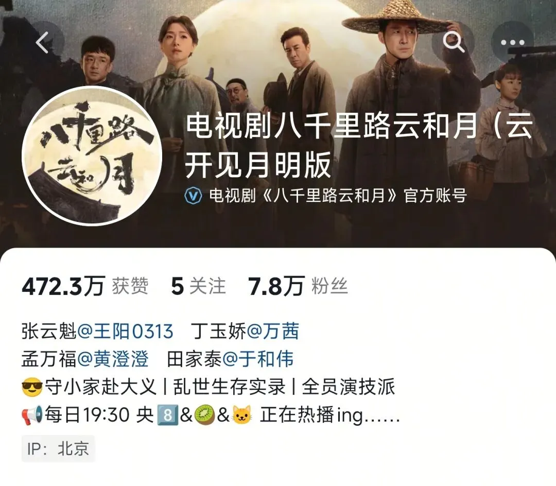《八千里路云和月》剧集虽然目前表现来看,这四个人要按照原著“换乘恋爱”了,但也有网友发现,该剧的短视频宣传账号名字是“云开见月明版”。“云”代表“张云魁”,而“月明”就是他与丁玉娇的孩子。拿出来单独强调,难道是剧集和原著不同,张云魁最后和丁玉娇重逢了?
