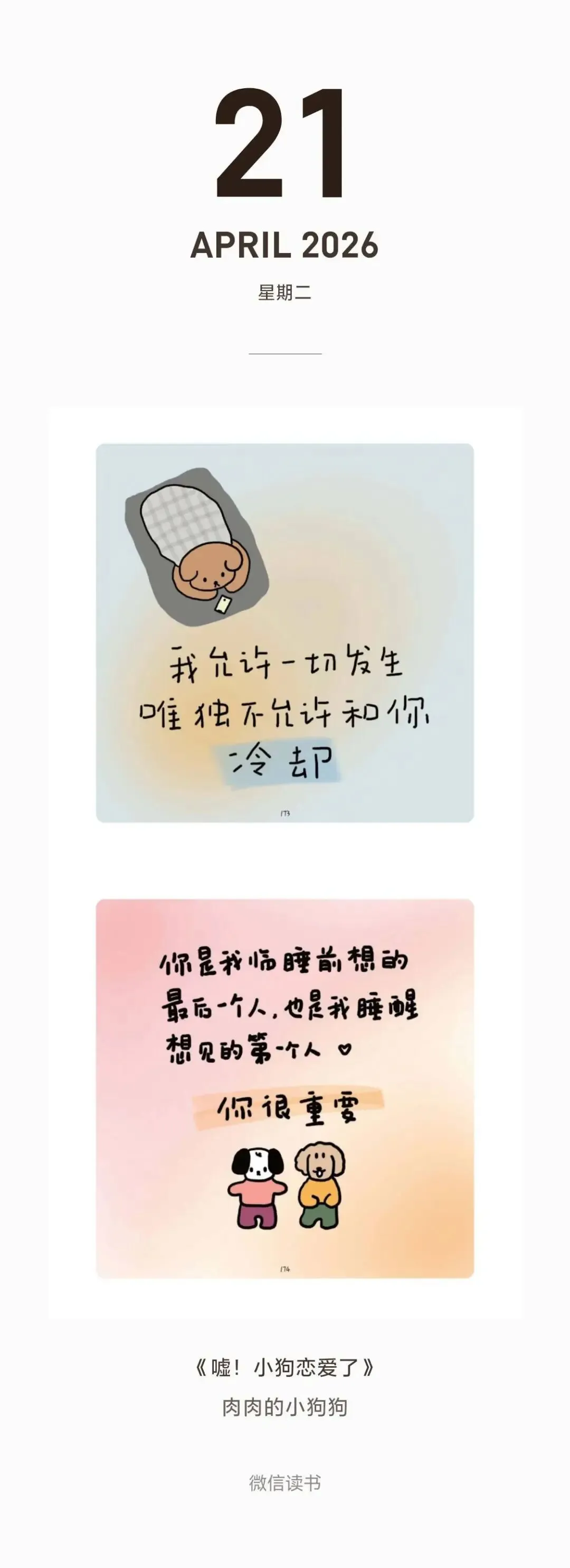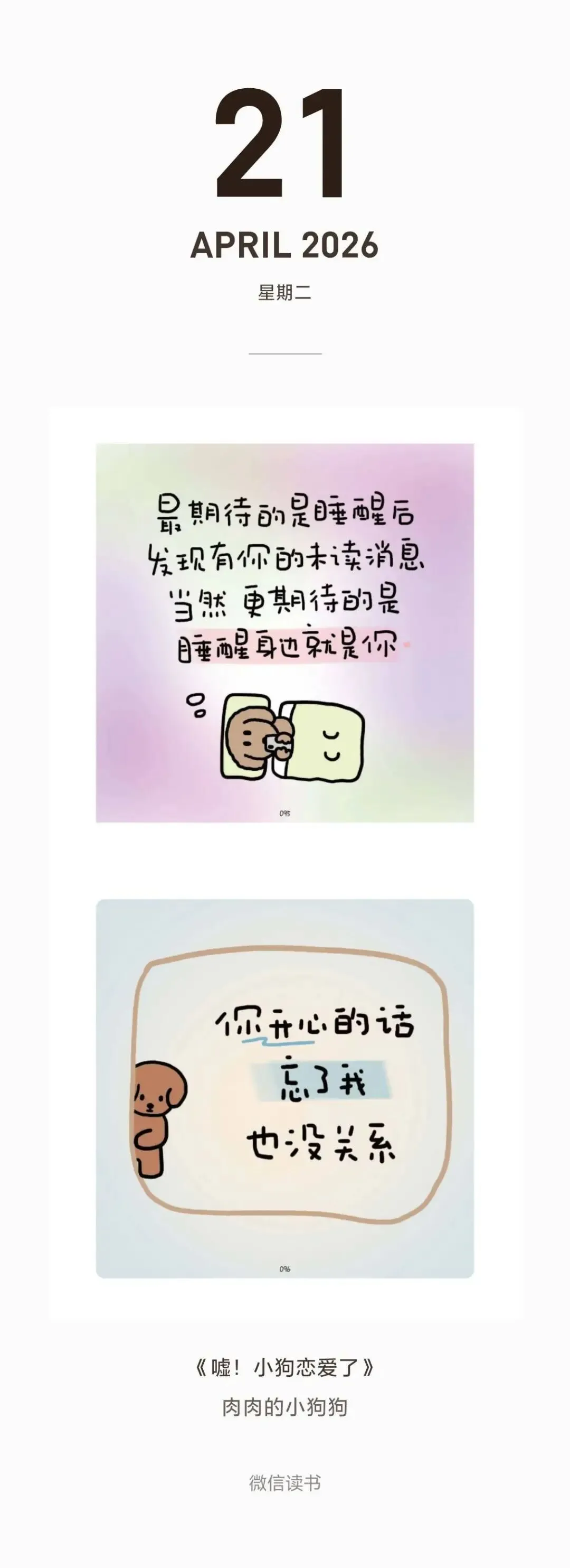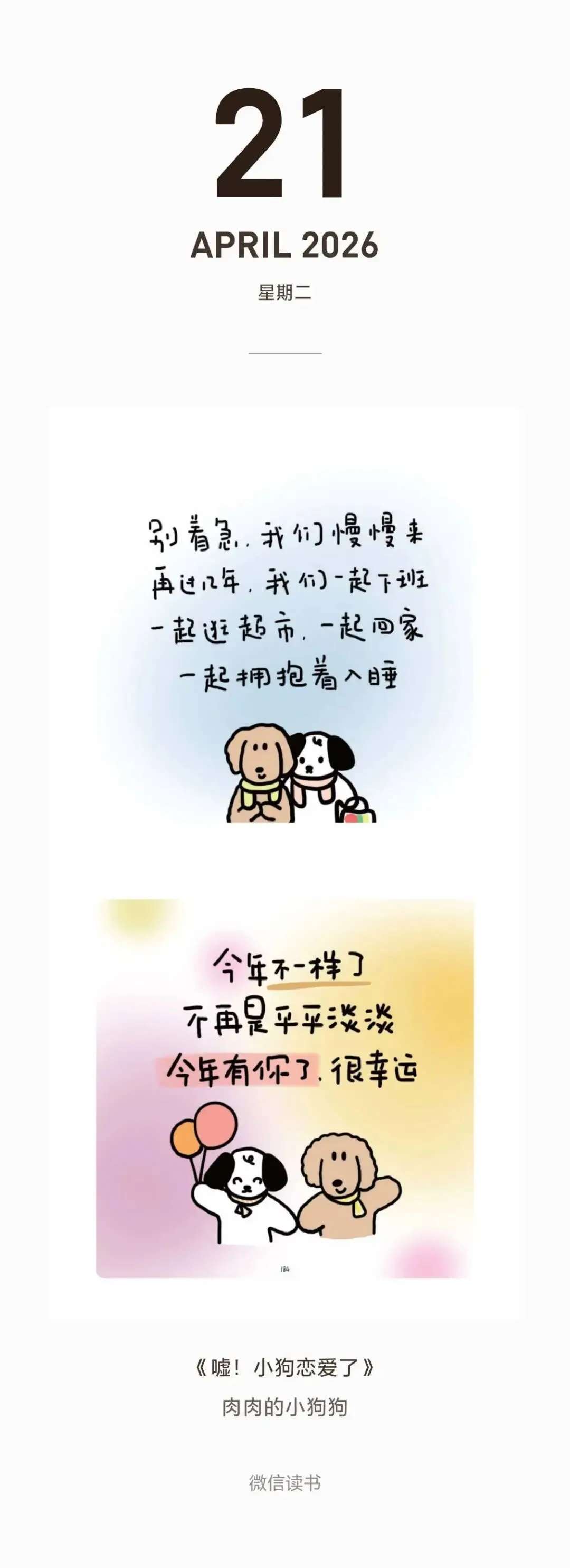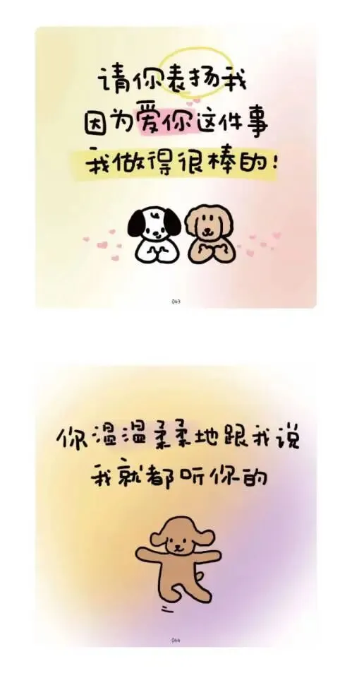 这本书讲的很有趣,作者也是一名社畜然后用小狗写自己有趣的语言和想法,很像平常很多我们想说又不好意思开口说的话,很像两个情侣之间的小心思的表达,很像爱人之间开不了口的感受,推荐大家去看一下,很治愈,有条件的粉丝姥爷们可以在我的小店买本纸质的看看更有质感。