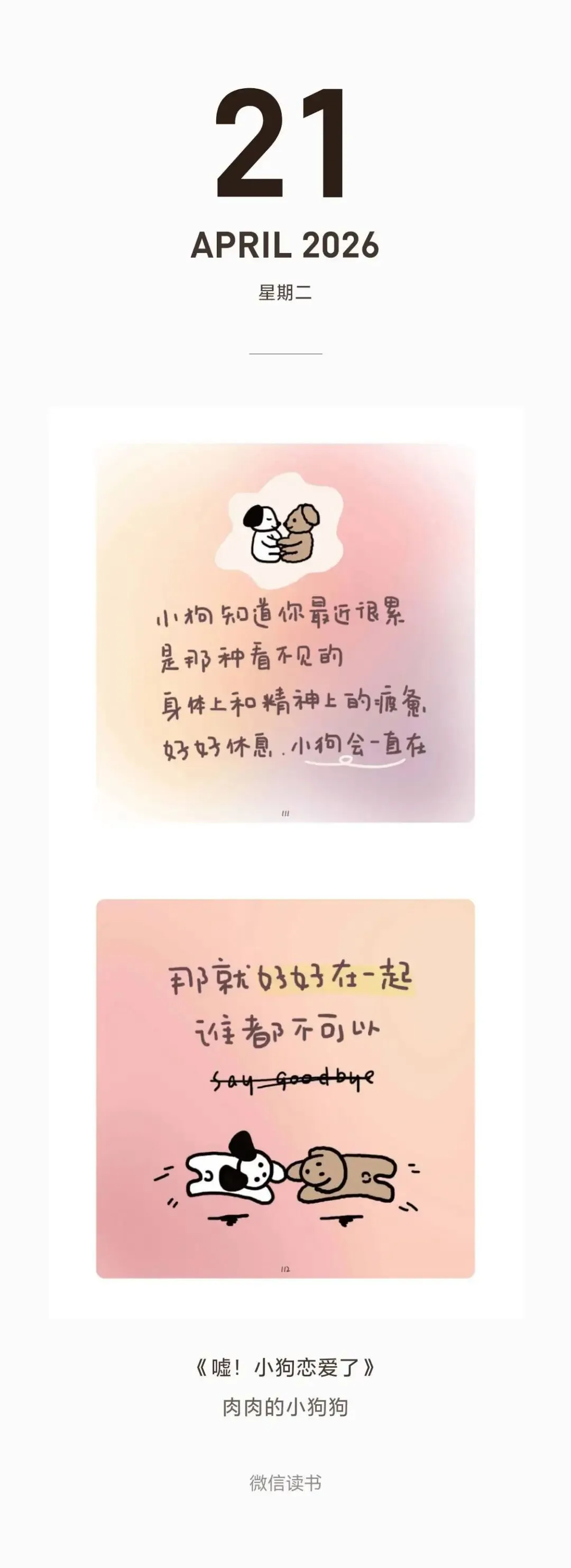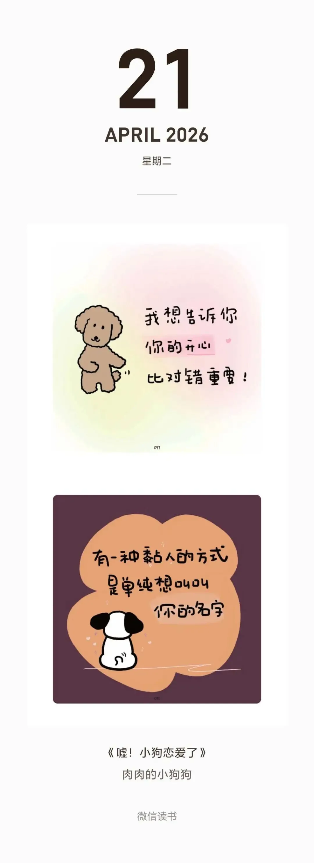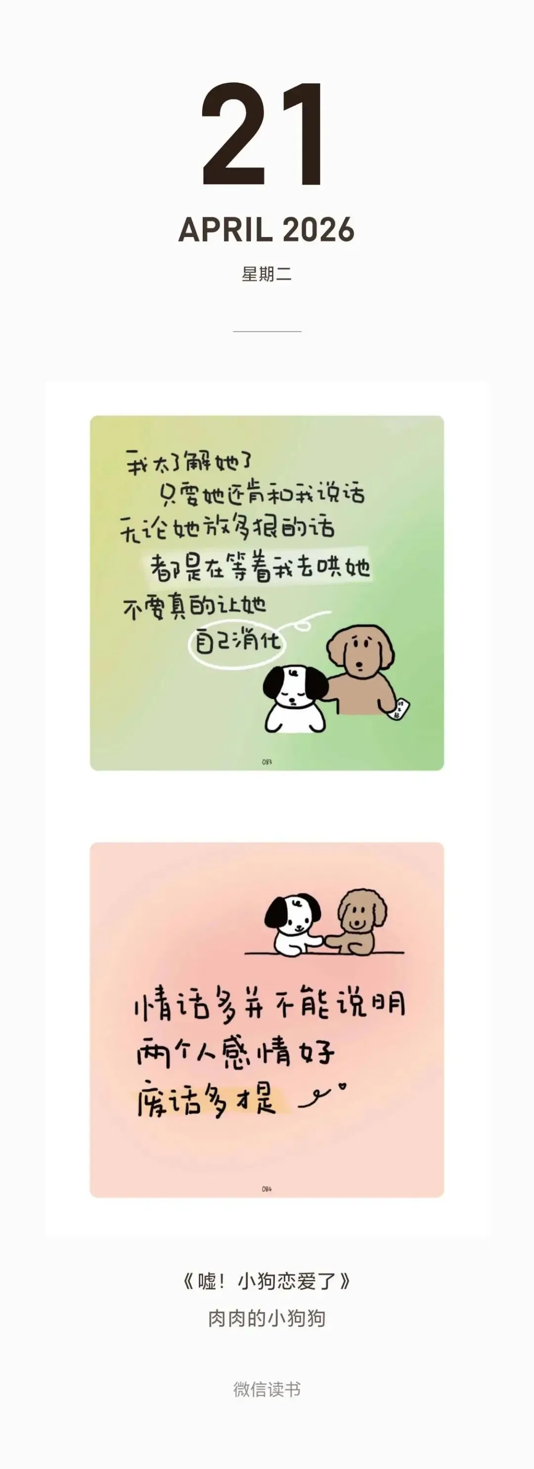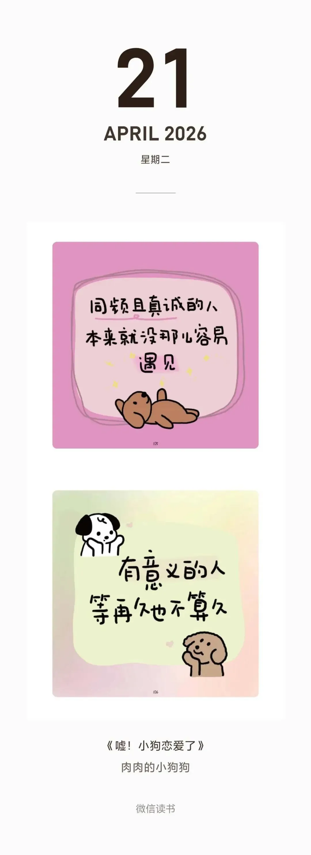 这本书讲的很有趣,作者也是一名社畜然后用小狗写自己有趣的语言和想法,很像平常很多我们想说又不好意思开口说的话,很像两个情侣之间的小心思的表达,很像爱人之间开不了口的感受,推荐大家去看一下,很治愈,有条件的粉丝姥爷们可以在我的小店买本纸质的看看更有质感。