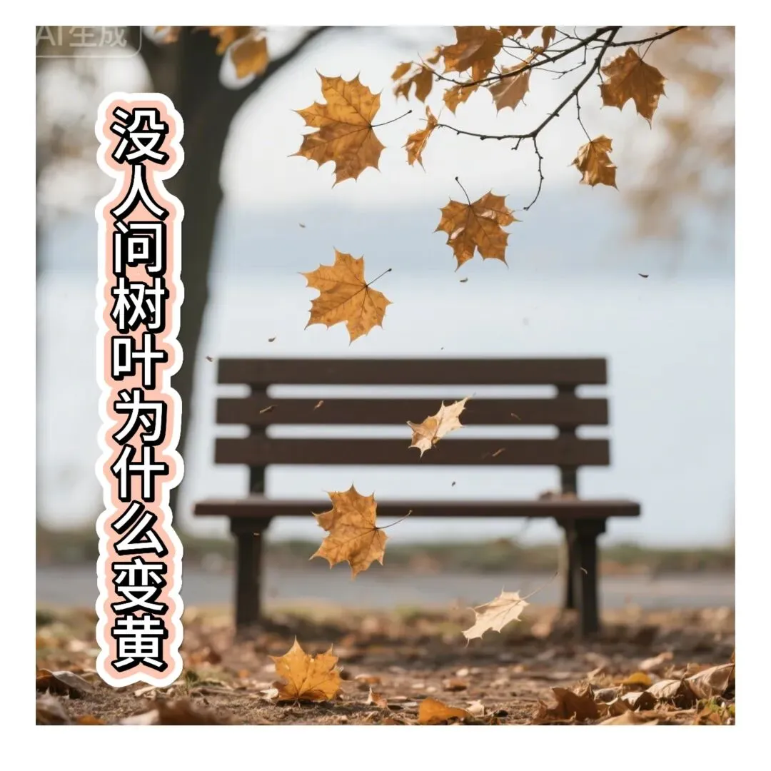 3 枯黄的树叶从枝头飘落 背景是空无一人的长椅 树叶落在地上 发出轻微声响
