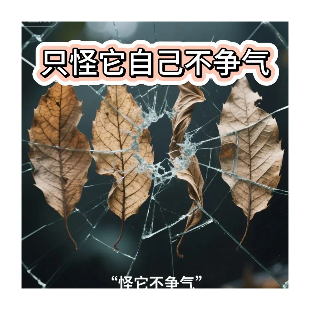 4 特写树叶的纹路 逐渐变干卷曲 画面渐变成破碎的玻璃效果 配文怪它不争气 画面静止