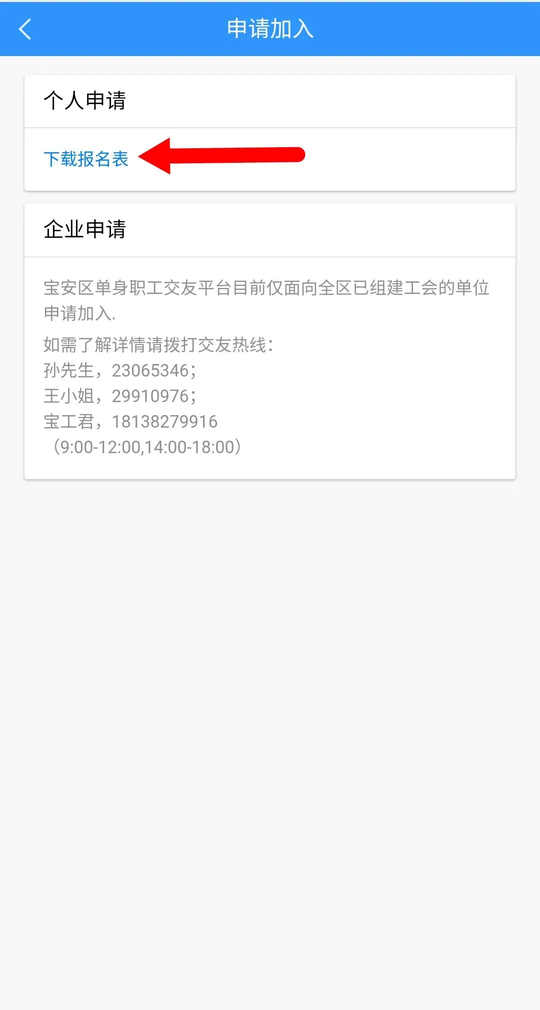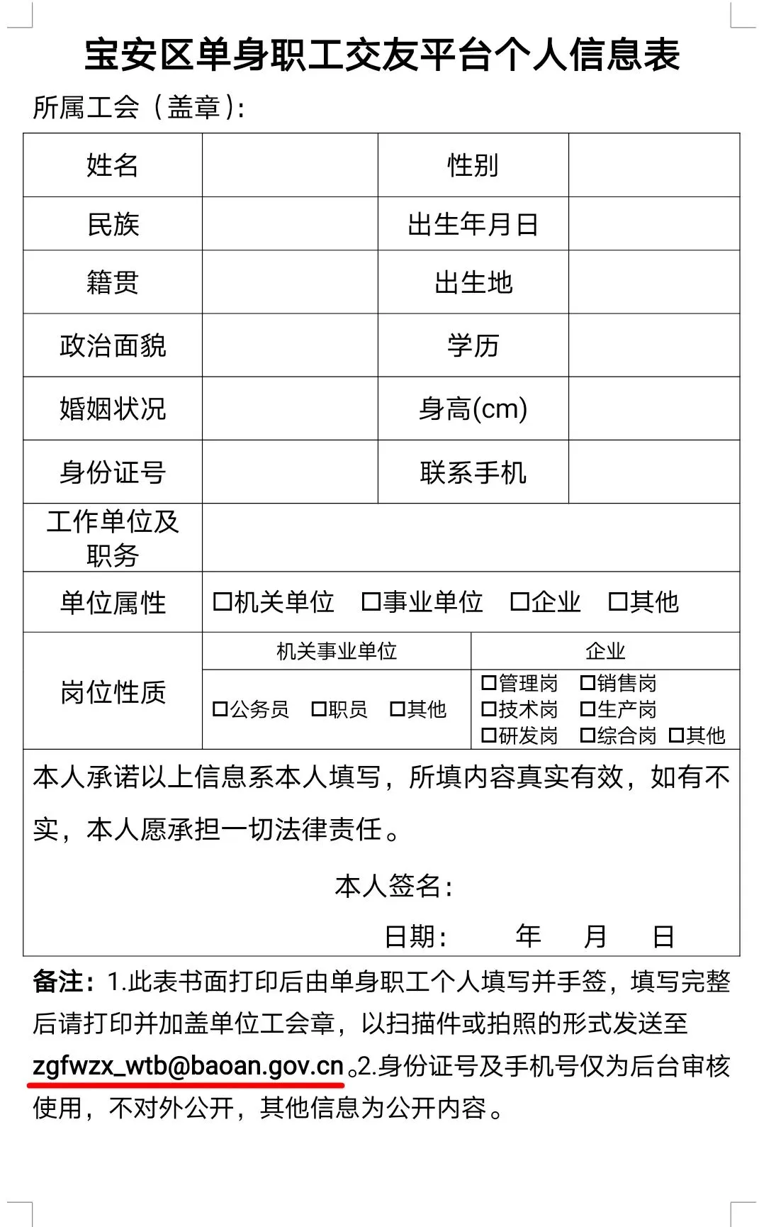 2018年3月,宝安区单身职工交友平台正式上线。加入平台后,广大单身职工只要打开手机微信——“宝安工会”微信公众号——职工交友,动动手指,就可以享受宝安区总工会提供的各类单身职工交友服务。