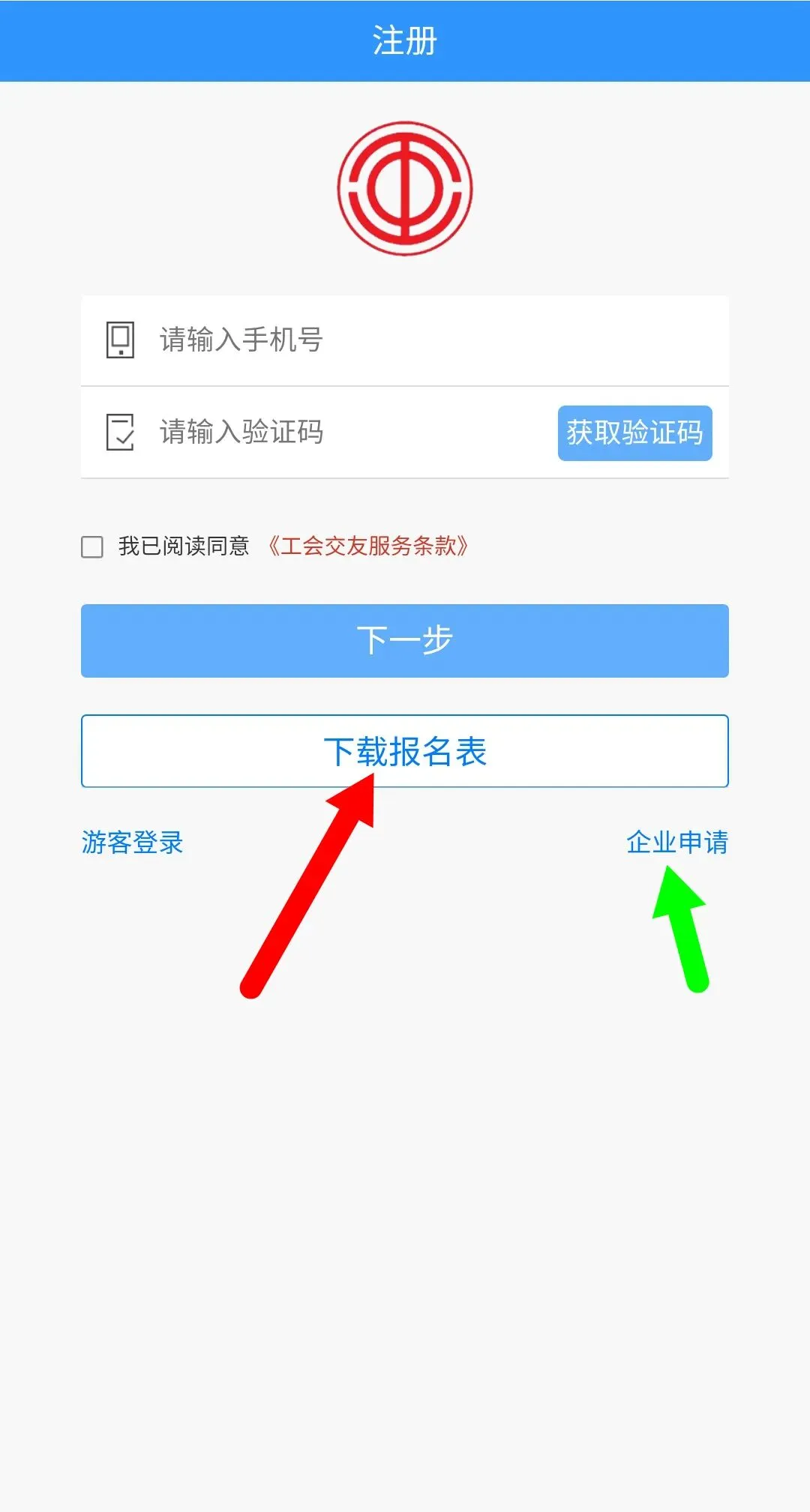 在弹窗提示点击“我要注册”后,系统会跳转至注册页面,选择“下载报名表”就可以啦!