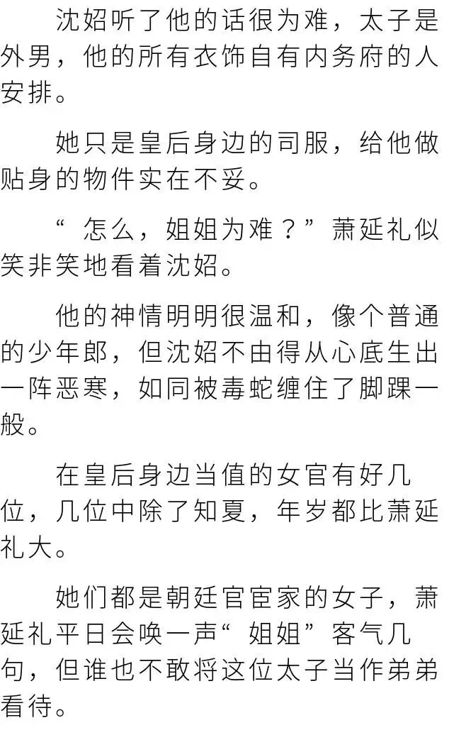 这个沈妱究竟是怎么回事?哪怕她是皇后身边的女官,可殿下对她的态度也过于亲昵了些!