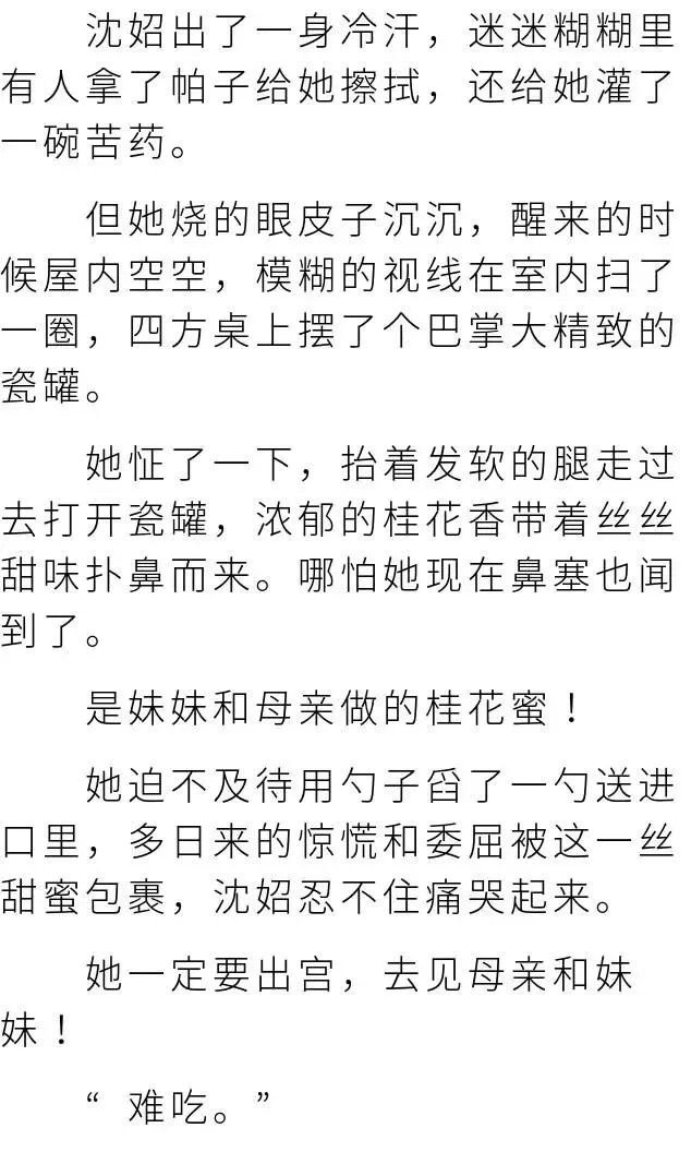 她真的吃不下去了,但想到明日可能吃不到饭,又往自己的嘴里塞了一口肉。