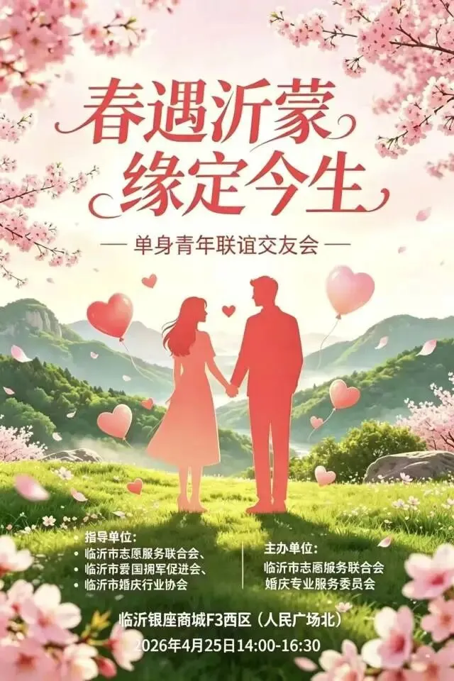 本次公益交友活动全程秉持公益初心,更为参与者准备了满满惊喜福利!凡是到场参与活动的单身青年,均可领取一份精心准备的伴手礼,收获一份春日小美好;若是在活动中成功牵手、觅得良缘,更能赢取专属惊喜大奖,为这份始于沂蒙的美好缘分,送上最真挚的祝福与纪念。