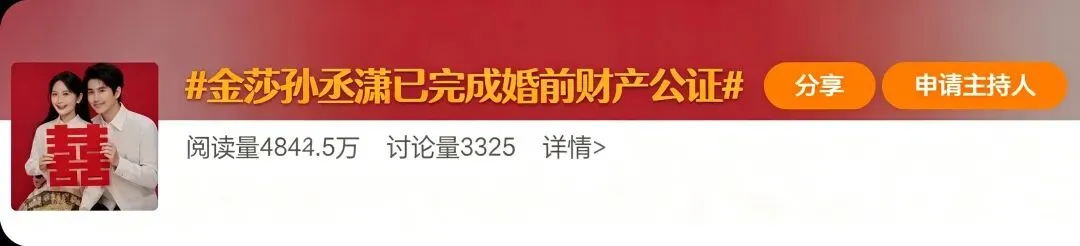 无独有偶,刚官宣领证的金莎与孙丞潇,