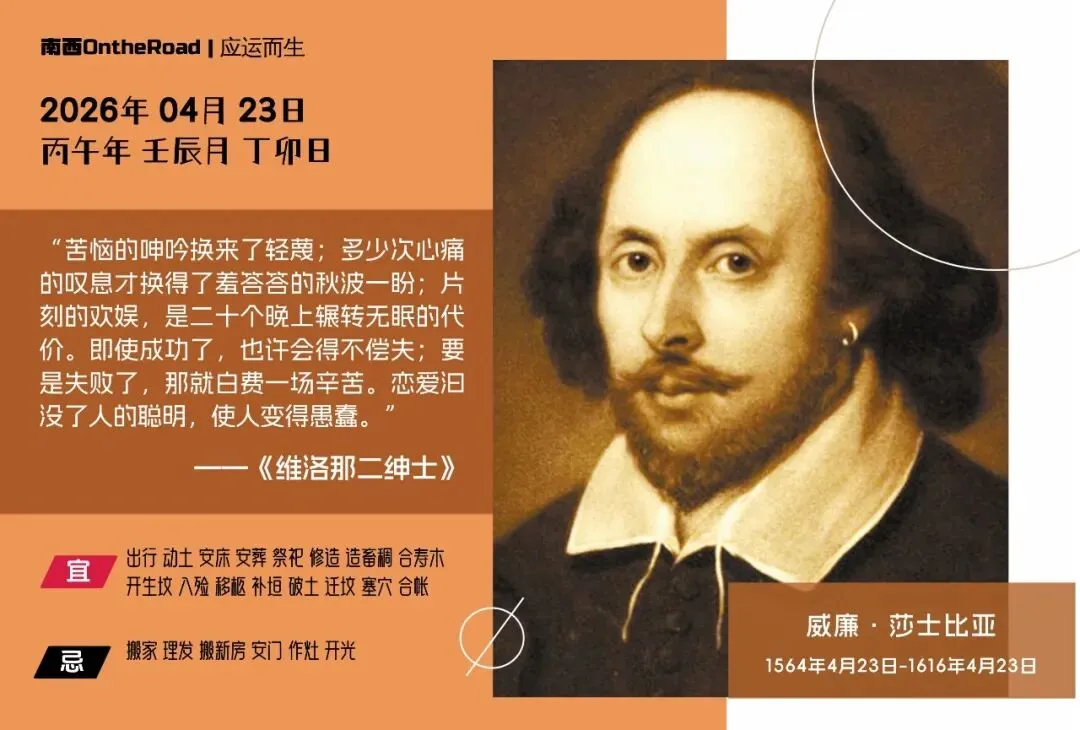 塞万提斯·萨维德拉都在1616年的这一天去世。此外,4月23日也是另外一些著名作家出生或去世的日子,如莫里斯·德律恩、拉克斯内斯、佛拉吉米尔·纳博科夫、约瑟·普拉和曼努埃尔·梅希亚·巴列霍……总之这一天文曲星很忙。